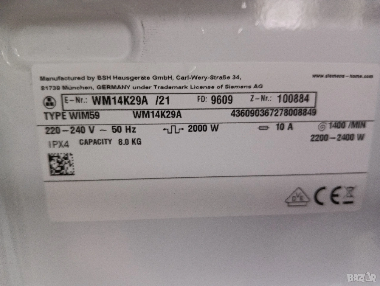 Пералня Сименс Siemens IQ 700 А+++ 8кг 2 години гаранция! → Обява 53331960
