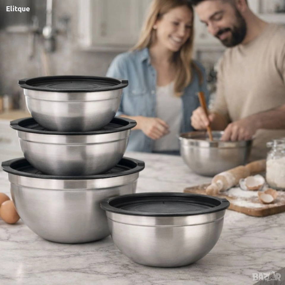 Комплект купи от неръждаема стомана 18/10 с капаци – 10 части, матово покритие