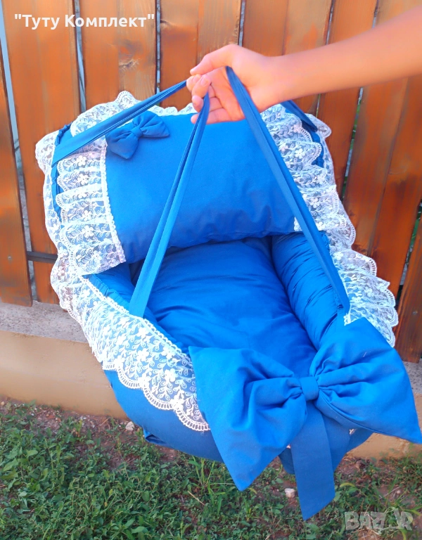 Бебешко гнездо със възглавница за малки принцове и принцеси в нежно кралско синьо 💙💙💙