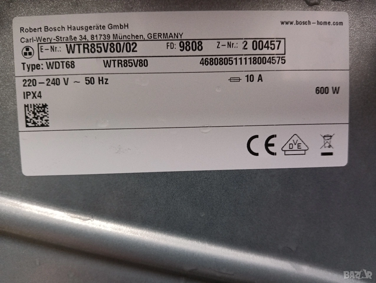 Сушилня с термопомпа Бош Bosch Serie 4 A+++ 8кг 2 години гаранция!