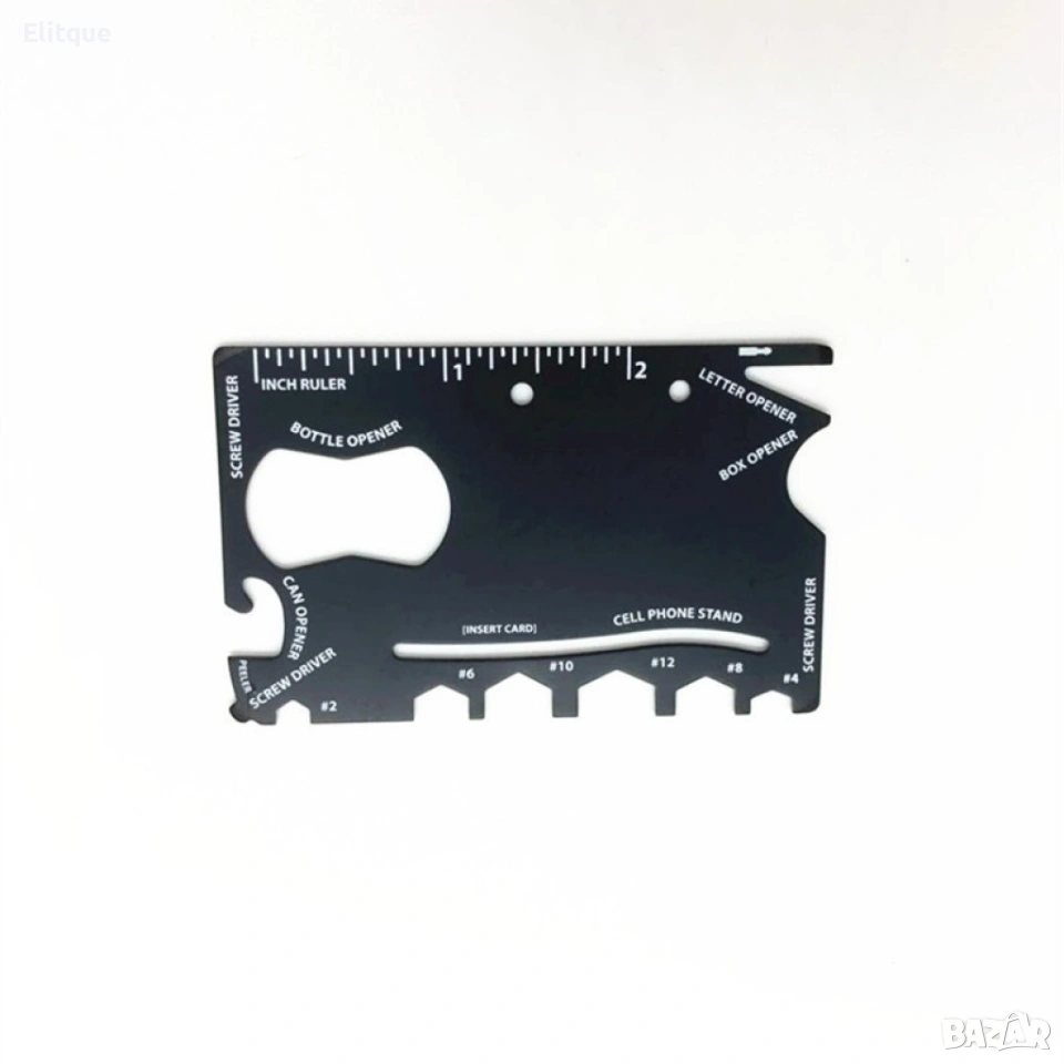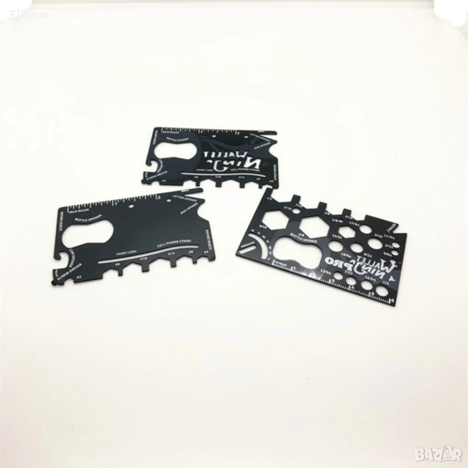 Wallet Ninja 18 в 1 – мултифункционален инструмент за портфейл Компактен и изключително практичен мултифункционален инструмент, който се побира лесно в портфейла и винаги е под ръка. Wallet Ninja комбинира 18 полезни функции в тънък и здрав дизайн, подходящ за ежедневна употреба, пътуване, къмпинг, автомобил или спешни ситуации. Изработен от устойчив материал, инструментът е лек, тънък и удобен за носене, без да заема място. Перфектен подарък за мъже, любители на практичните джаджи и хора, които обичат да са подготвени. Функции (18 в 1): – Отварачка за бутилки – Отварачка за консерви – Отвертки – Шестостенни ключове – Линийка – Ключ за гайки – И още много полезни функции Размери: 85 мм × 55 мм × 2 мм Побира се във всеки стандартен портфейл. Доставка с Еконт с опция преглед и тест до 3 работни дни.
