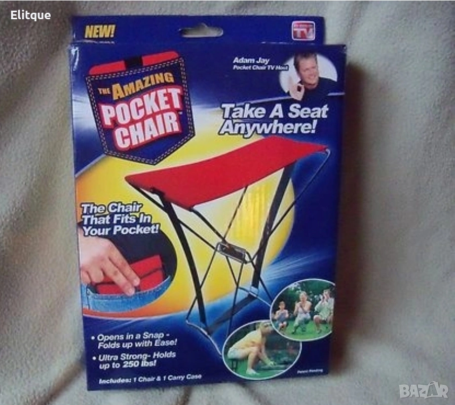 Сгъваемо джобно столче Amazing Pocket Chair → Обява 53332223