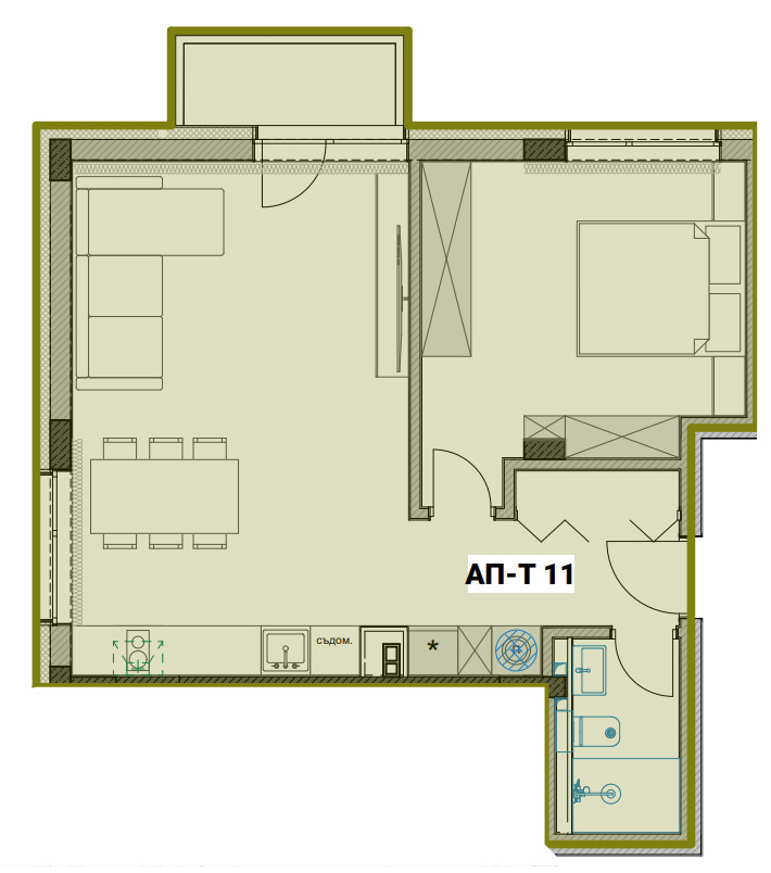 __Апартамент с 1 спалня, с изложение Запас-Север.