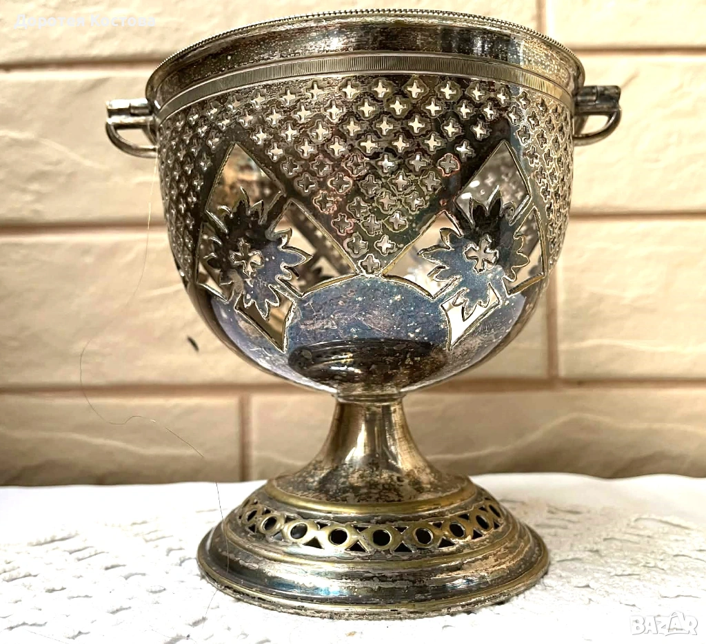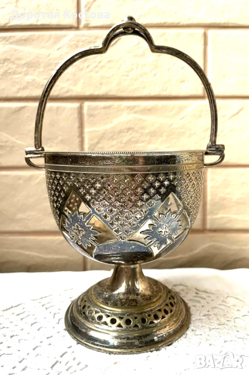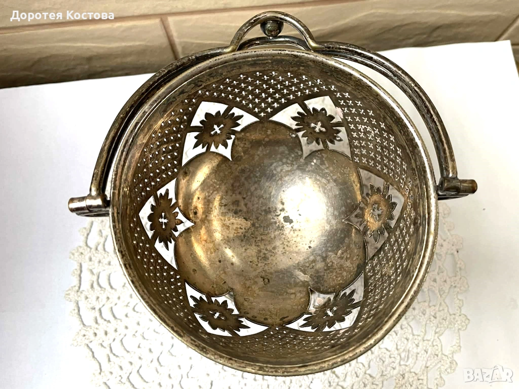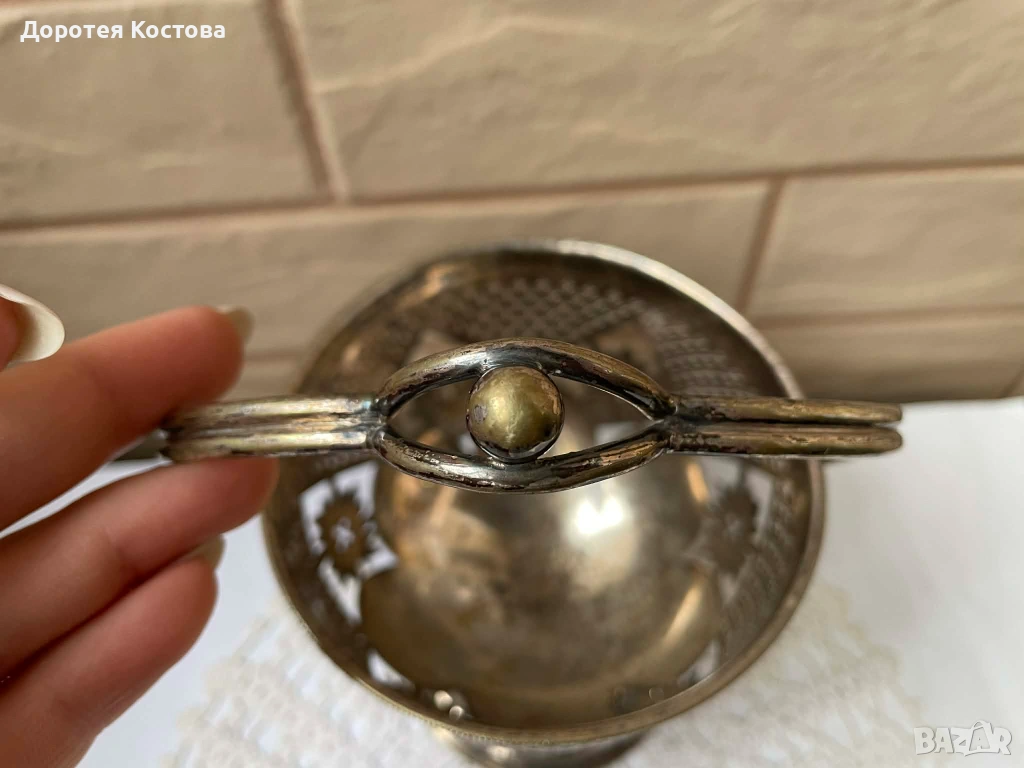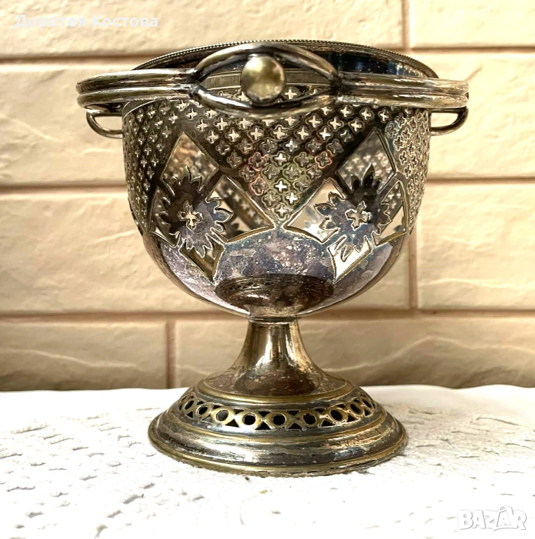 Красива посребрена бонбониера от Англия, масивна и здрава, размерите са на снимките. Прекрасна и рядко срещана, не е почистена. Цена - 25 евро / 48.90 лв.