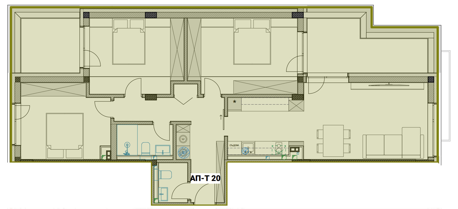 __Апартамент с 3 спални и 2 тераси,изложение Изток-Запад.
