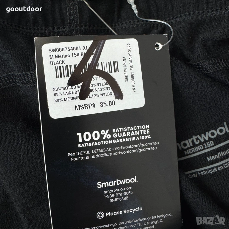 • Нашата лека мериносова материя е с рециклирана найлонова сърцевина, като същевременно запазва 100% мериносова вълна до кожата