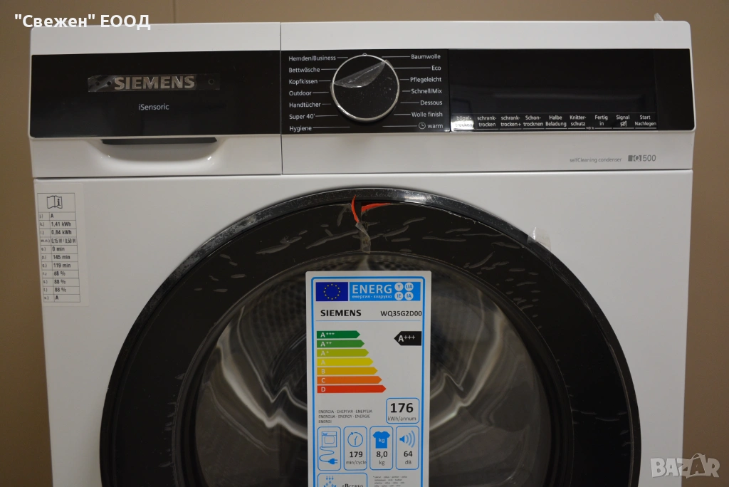 selfCleaning: Системата selfCleaning автоматично почиства кондензатора по време на всяка програма, без да се изисква ръчна поддръжка. Така сушилнята остава енергийно ефективна през целия си живот.