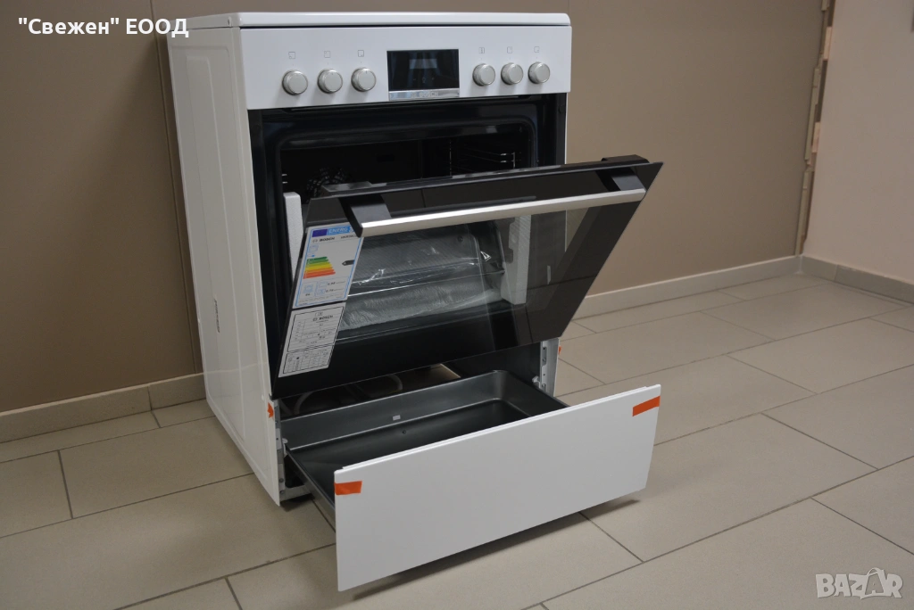 EcoClean Direct: Специално самоочистващо покритие на задната стена, което абсорбира мазнините по време на печене и намалява нуждата от ръчно почистване. Повърхността се регенерира при всяко загряване, което поддържа фурната чиста за много по-дълго време.