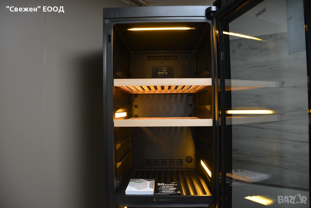 Haier HWS236GDEH1 предлага пълен контрол и наблюдение чрез умното приложение hOn, което се свързва с уреда посредством Wi-Fi. От твоя телефон можеш да задаваш точната температура за всяка зона, да сменяш режимите и да включваш LED осветлението, без дори да си вкъщи. Приложението изпраща известия в реално време – например при отворена врата, рязка промяна в температурата или нужда от почистване на филтъра. Освен това предоставя препоръки за съхранение според вида на виното, така че всяка бутилка да получава оптимални условия. Интерфейсът е интуитивен и на български език, което прави управлението лесно и приятно. Тази свързаност превръща охладителя в интелигентен асистент, който се грижи колекцията ти винаги да е в съвършено състояние.