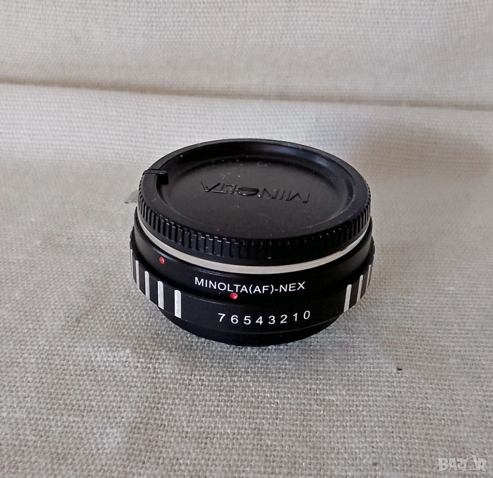 Продавам преходник Sony/Minolta A to Sony E mount . Ползван само 4-5 пъти за тест на два обектива. Състояние - като нов ! Има пръстен за смяна на блендата! Без АФ - разбира се. Добавям оригинална Минолта капачка.