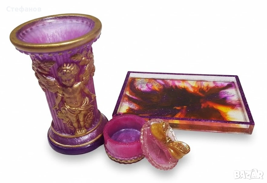 комплект от три части. Изцяло ръчно изработен с много внимание към детайла, комплектът