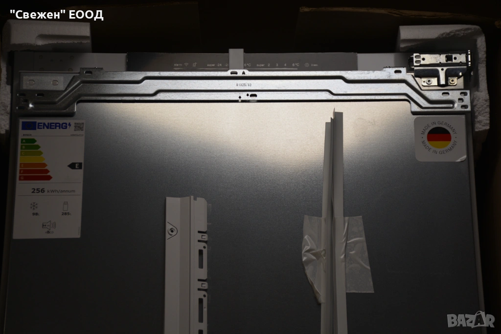 Bosch KBN96VFE0 е премиум вграден хладилник с фризер от Series 4, създаден за кухни с високи изисквания към вместимост, удобство и модерна функционалност. С внушителен общ полезен обем 383 литра (285 л хладилна част + 98 л фризер), моделът предлага почти камино място, което рядко се среща при вградени уреди. С ширина на нишата 708 мм и височина 1935 мм, това е XXL решение за големи семейства и за клиенти, които искат много пространство, без да компрометират дизайна на кухнята.