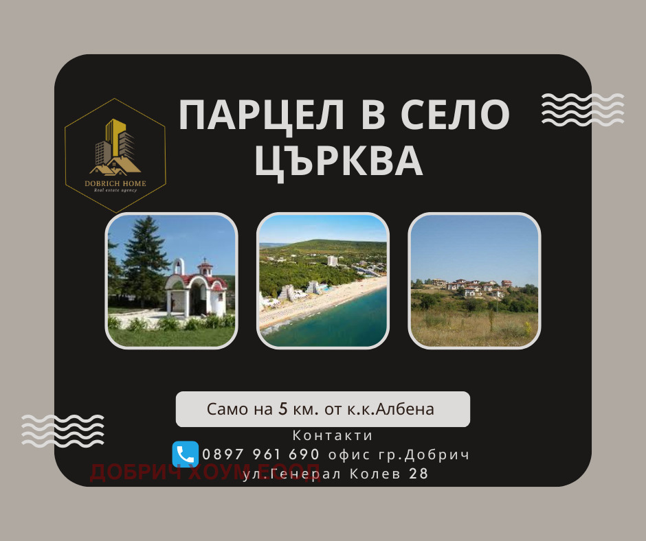 'Добрич Хоум' има удоволствието да ви предложи парцел в село Църква, разположено само на 5 минути от курортен комплекс Албена.