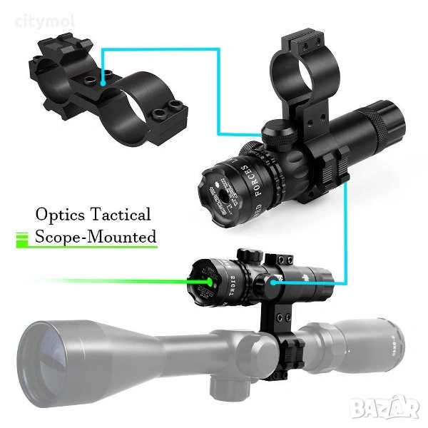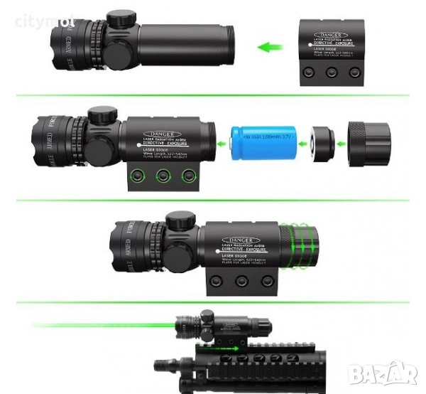 Зеленият мерник е подходящ за монтаж на пистолет, пушка, карабина и други огнестрелни оръжие.