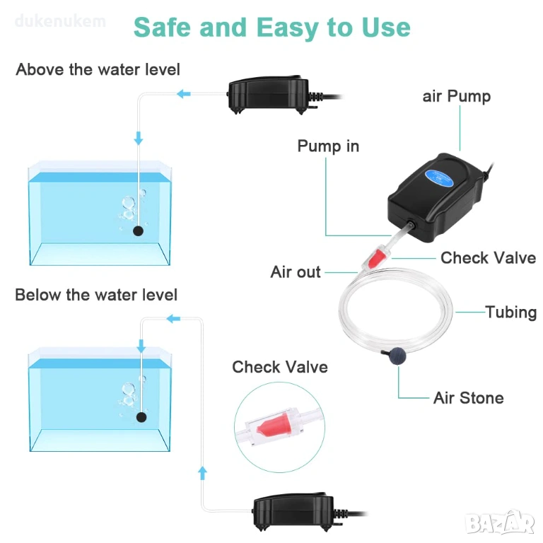 Съвместима с гъбени филтри, въздушни камъни и хидропонни системи