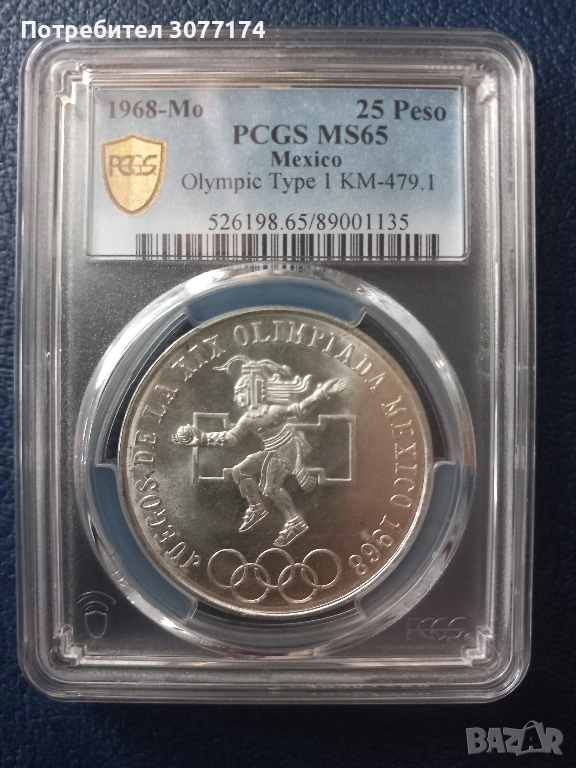 Сребърни 25 песо Мексико 1968 МС65 → Обява 53333557