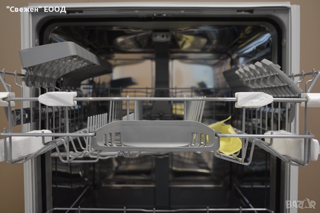 Горната и долната кошница позволяват лесно конфигуриране според размера на съдовете. Сгъваемите решетки създават повече място за тенджери, тави и по-високи чаши.