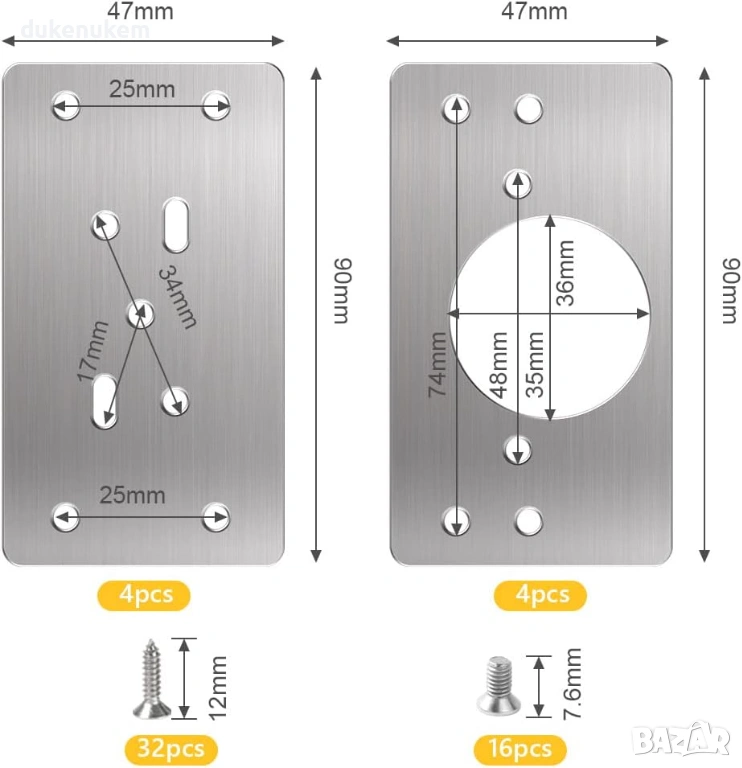 Комплект плочи за ремонт на панти – 8 бр. + 48 винта
