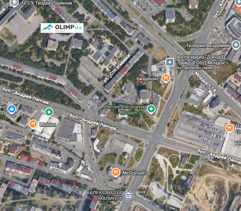 Парцелът се намира в непосредствена близост до бул. Андрей Сахаров, само на около 200 метра от метростанция, което го прави изключително комуникативен и леснодостъпен. Локацията е в оживен градски район с множество жилищни блокове, обществени сгради, училища и спирки на градски транспорт, с постоянен човекопоток и отлично развита инфраструктура.