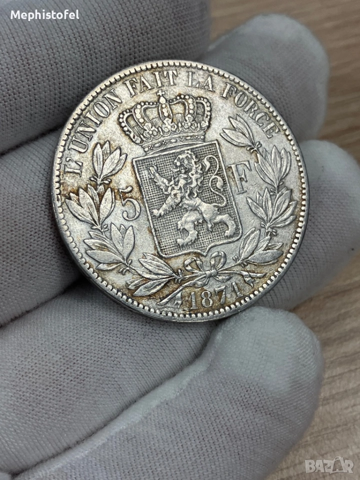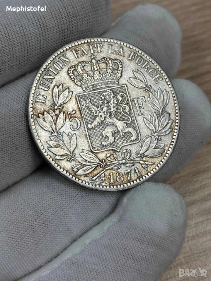 5 франка 1871 г, Кралство Белгия - сребърна монета