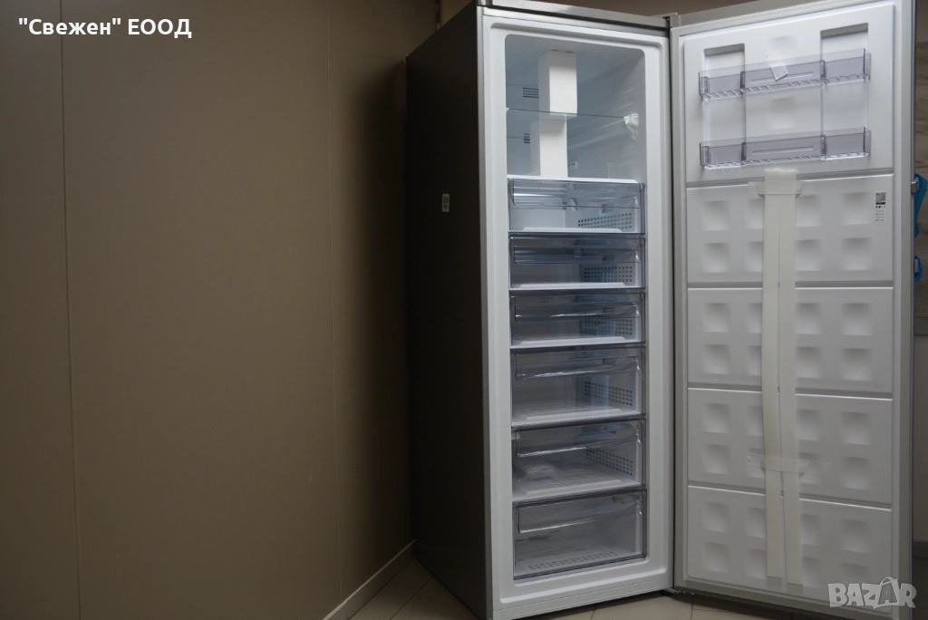 Soft Opening: Системата Soft Opening осигурява плавно и леко отваряне на вратата без усилие, дори при пълен фризер. Здравата алуминиева дръжка и специалният механизъм гарантират комфорт и дълготрайна издръжливост.