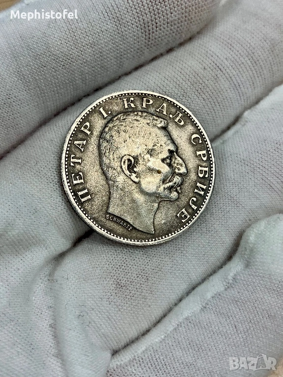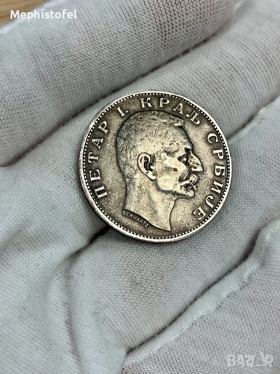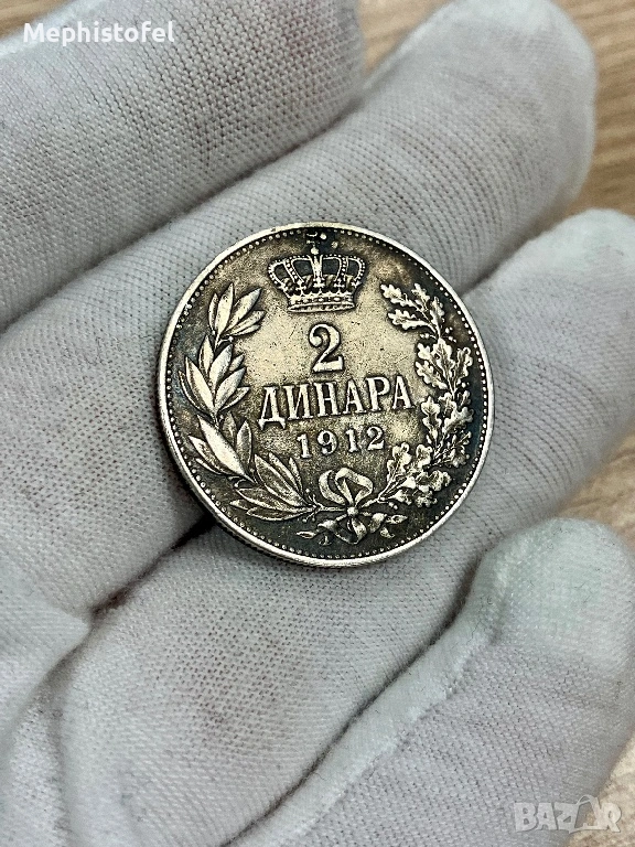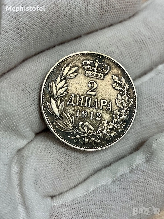 2 динара 1912 г, Кралство Сърбия - сребърна монета, рядка
