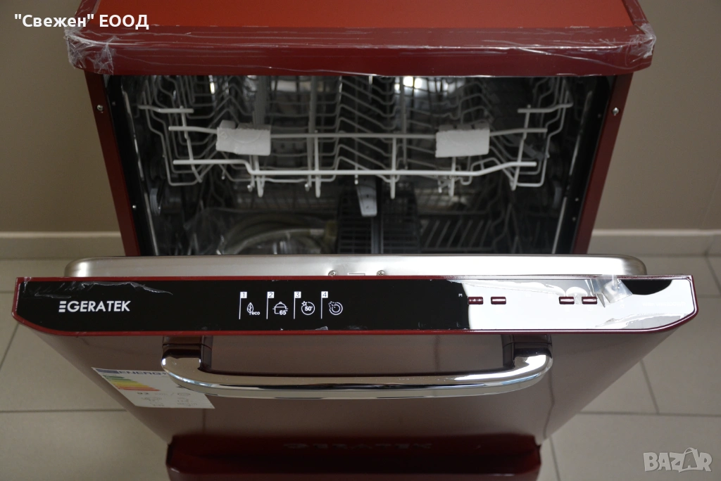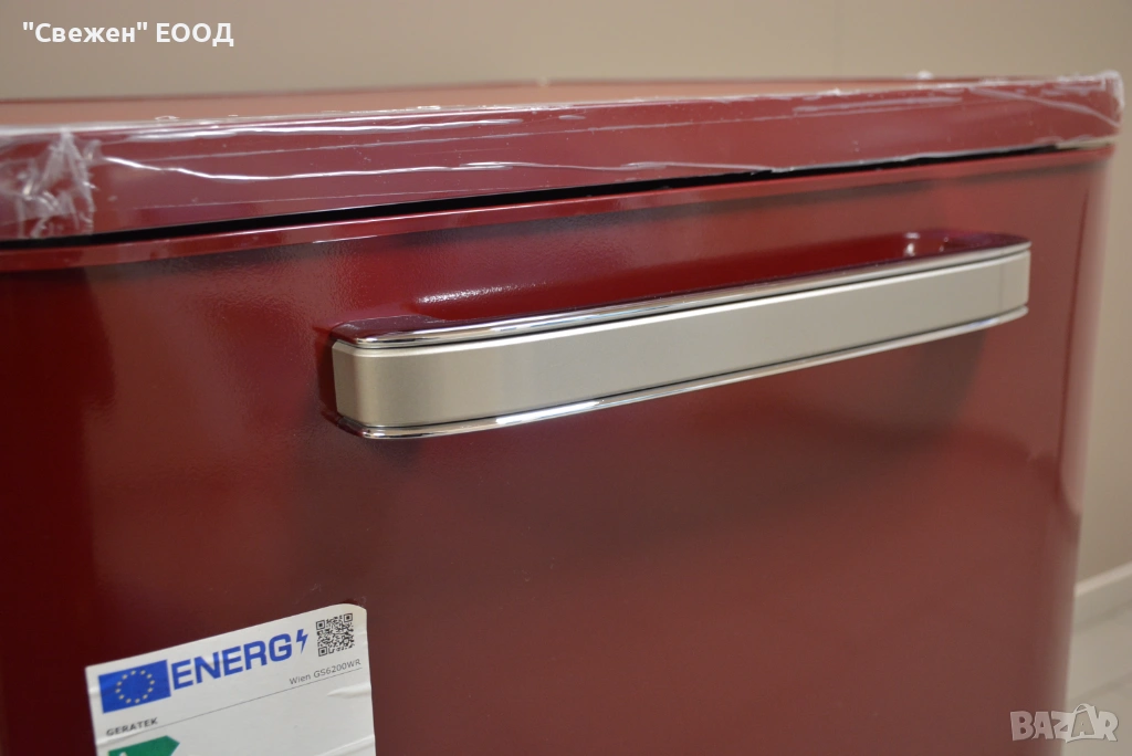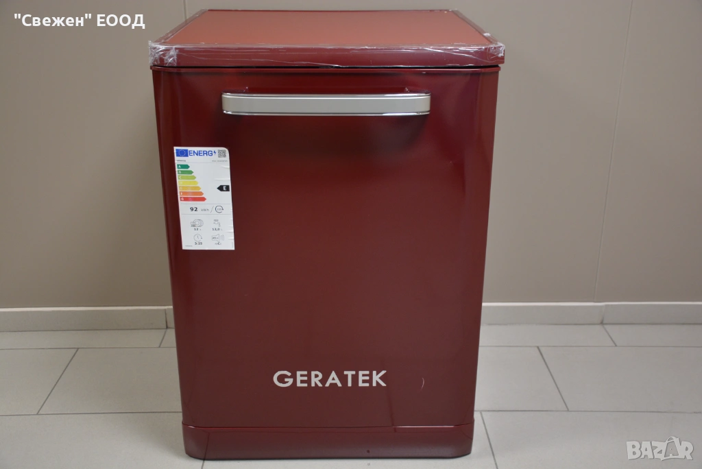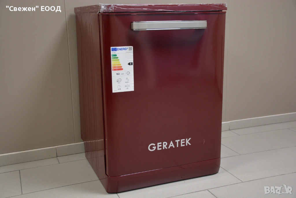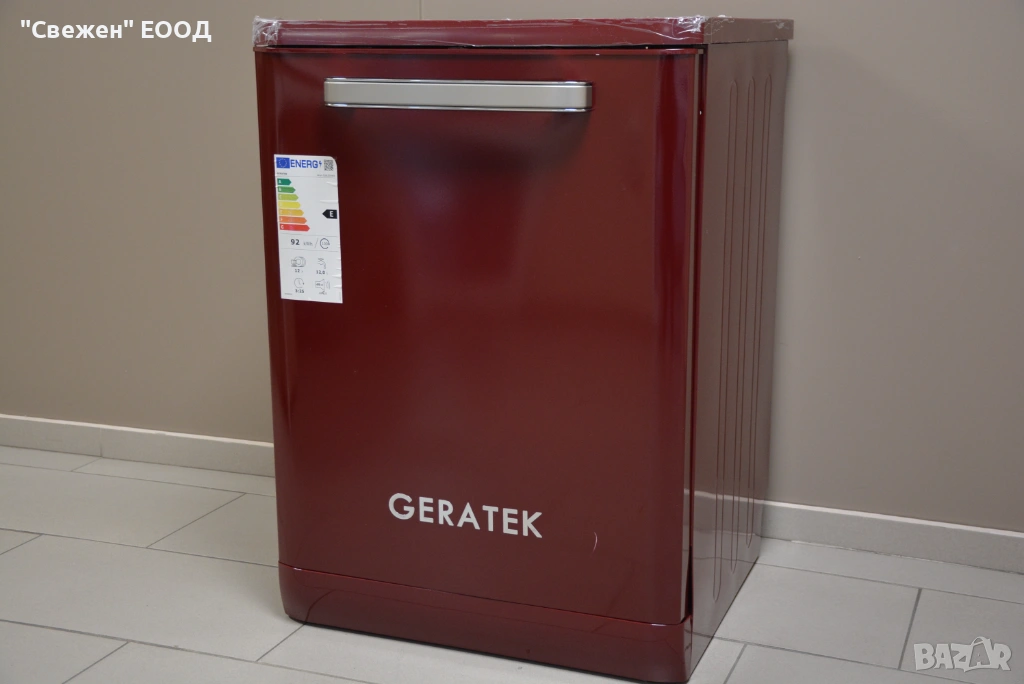 Моделът GERATEK Wien GS6200WR е съдомиялна в типичния за марката „Wien“ ретро стил – ярко червено лице, изчистен фронт и дръжка/панел, които напомнят 50-те години. Това я прави идеална за кухни с ретро хладилници и печки в цвят бордо/червено. Корпусът е 60 см, височината е около 82 см – влиза под стандартен плот.