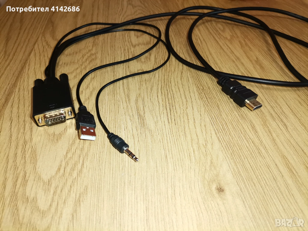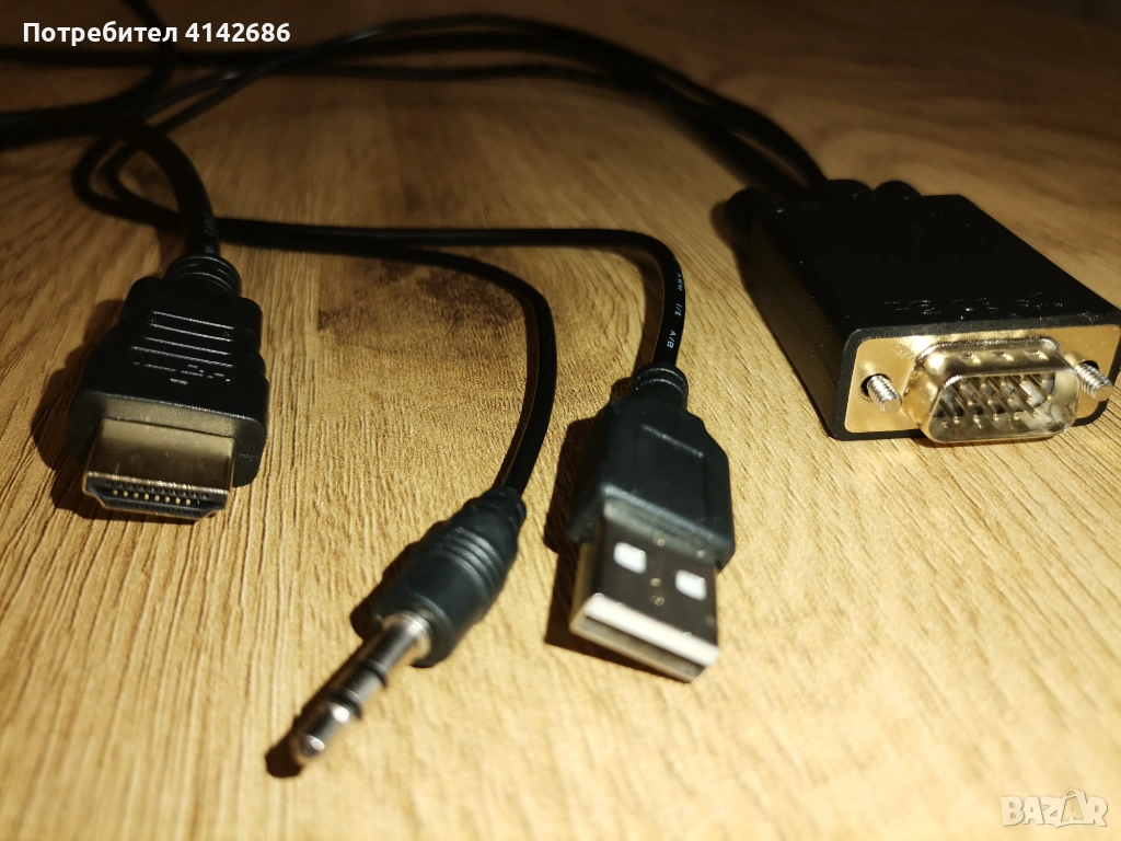 Кабел HDMI към VGA, 3.5 мм жак и USB, 1.8 метра → Обява 53333948