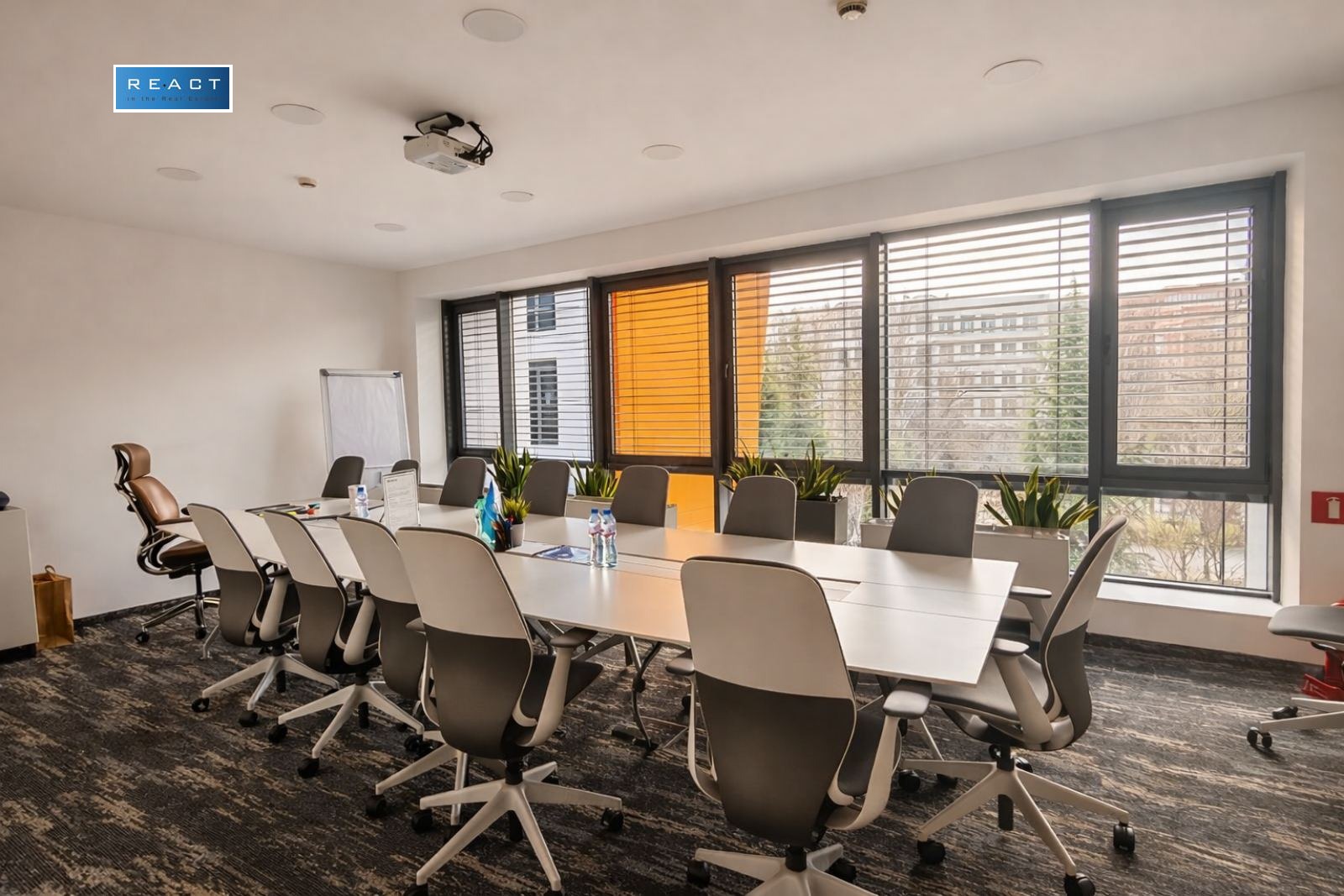Разпределение: самостоятелен офис на етаж рецепция/ приемна, няколко по-голяма тип Open space зона( с възможност за допълнително преграждане), заседателна зала, самостоятелни работни помещения помещения, кухненски бокс, санитарни помещения, тераса.