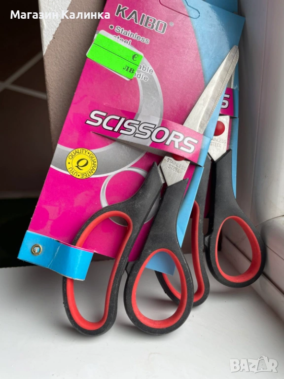 Ножица за домашна и училищна употреба. Остриета от здрав метал, удобна дръжка.