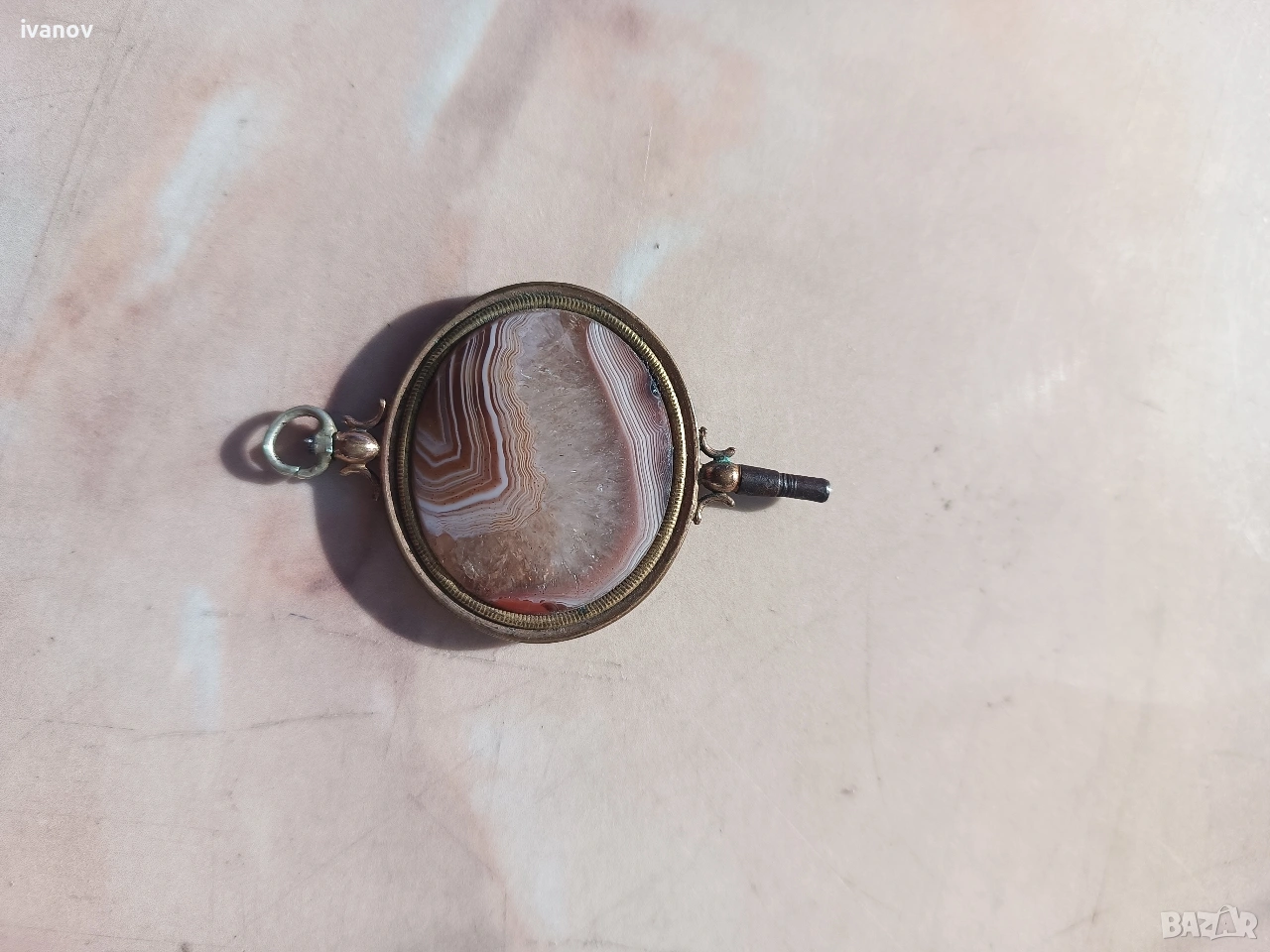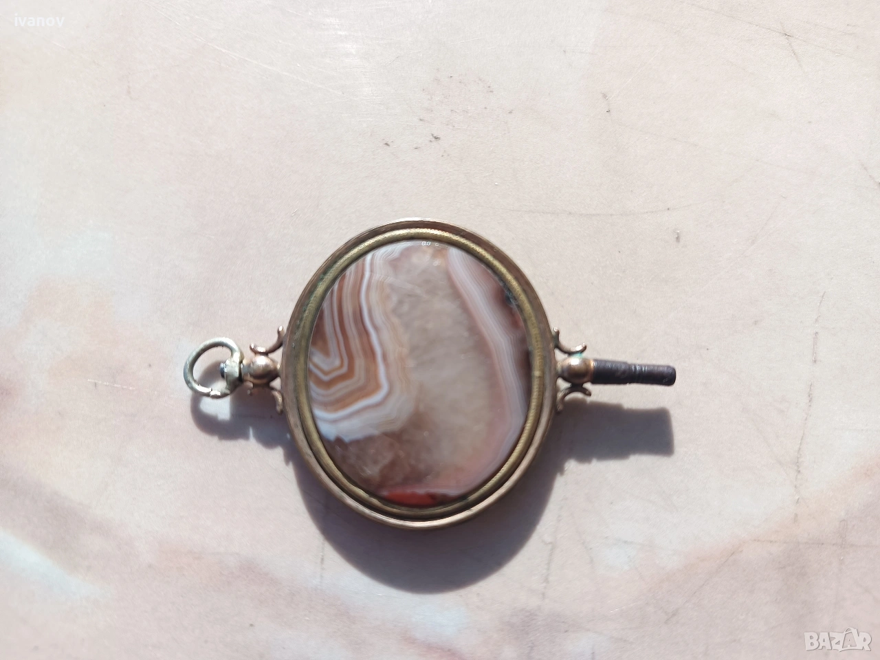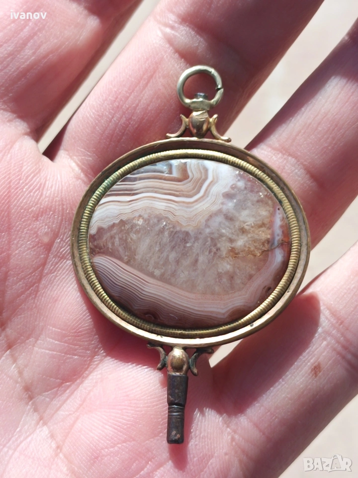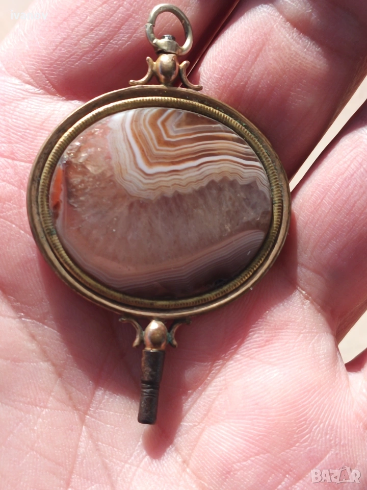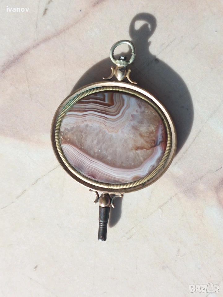 Ключ за джобен часовник с ахат. Размери - 6/4 см.