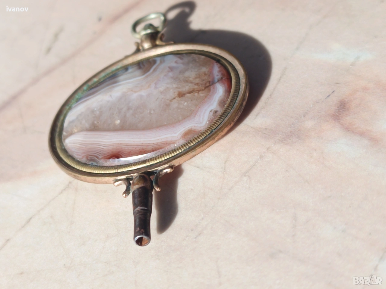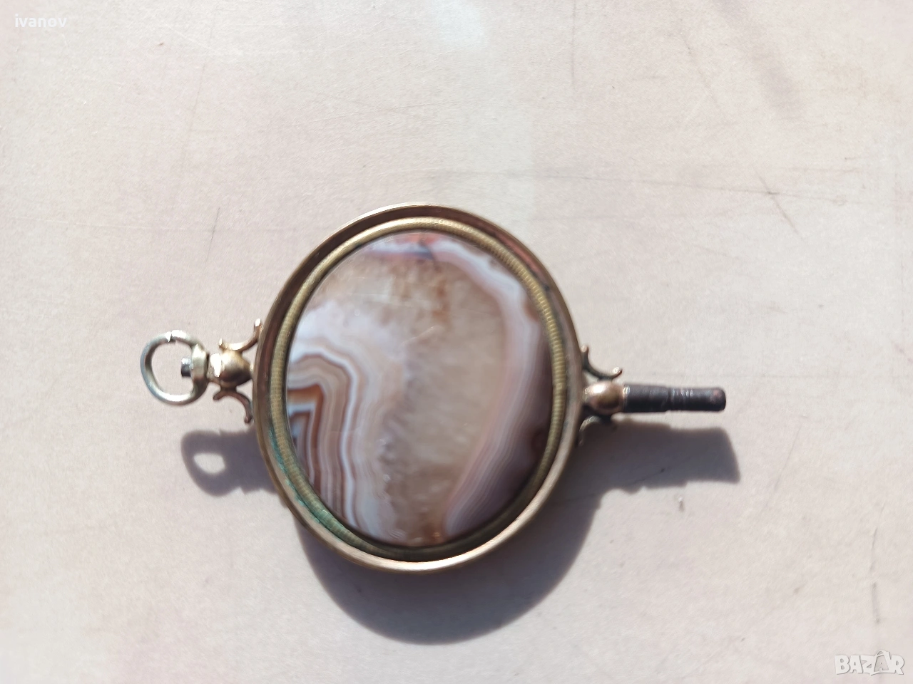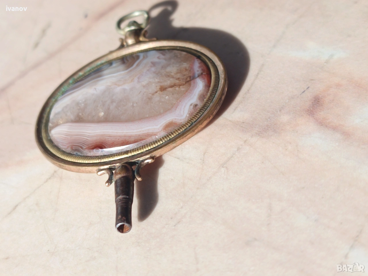 Ключ за джобен часовник с ахат. Размери - 6/4 см.