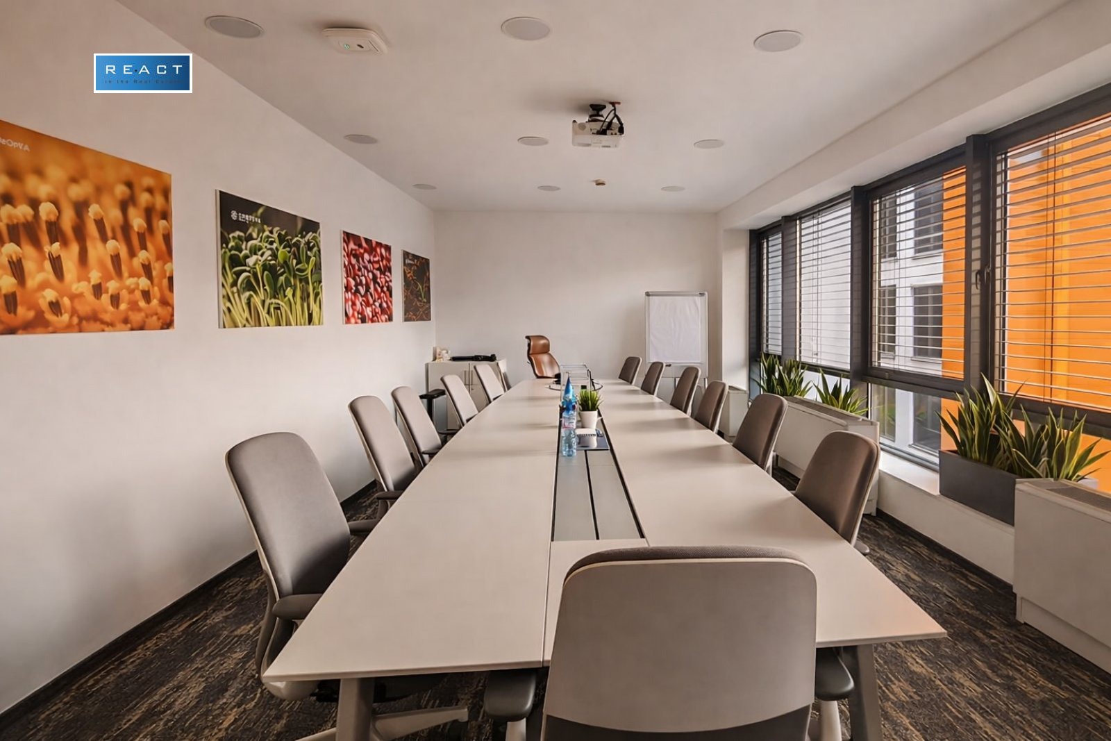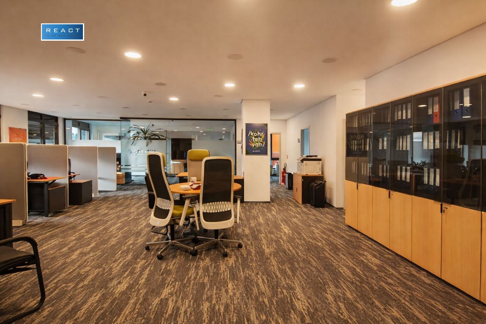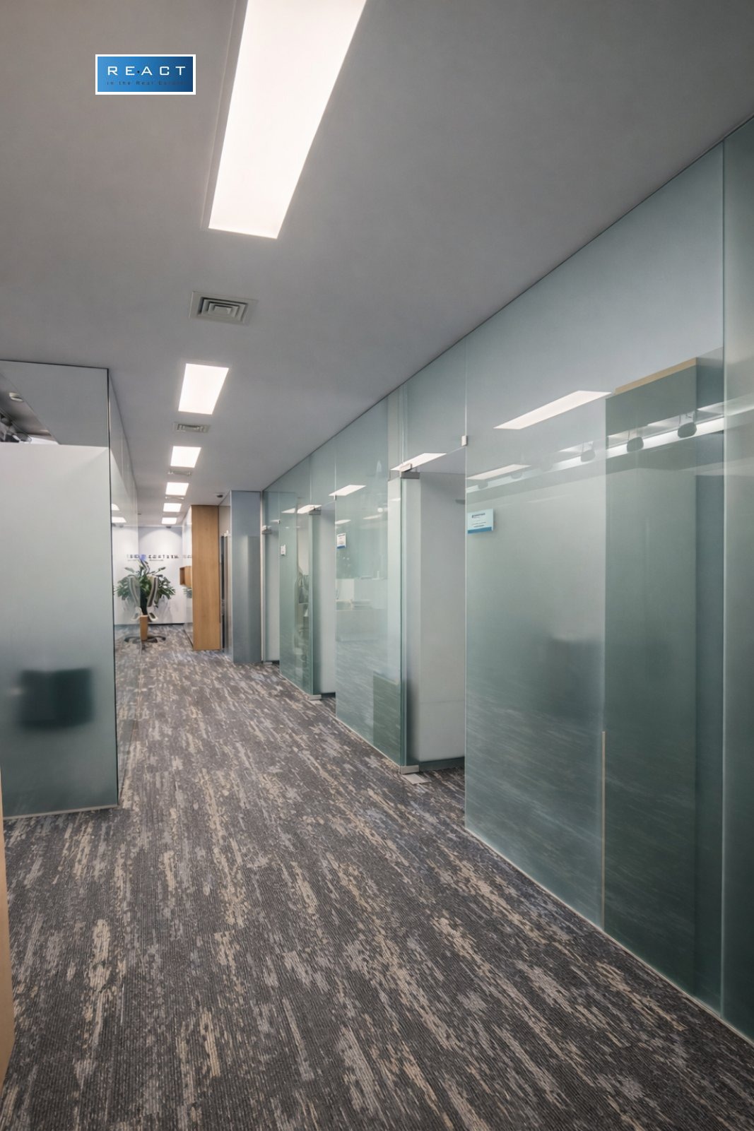 Разпределение: 2 съседни етажа рецепция/ приемна, няколко по-големи тип Open space зони( с възможност за допълнително преграждане), заседателни зали, самостоятелни работни помещения помещения, кухненски бокс, санитарни помещения, тераса.