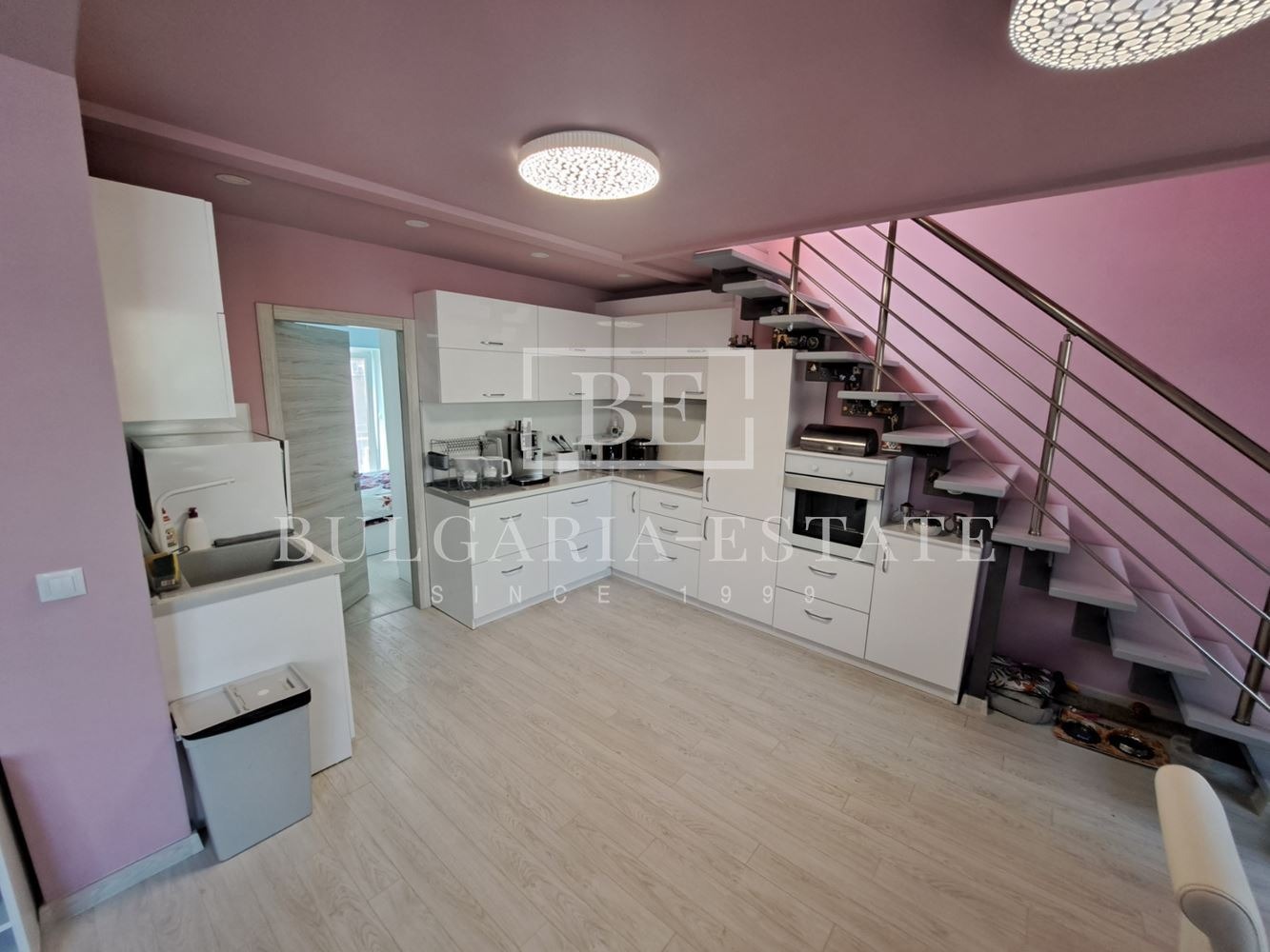 - Апартаментът разполага с общо три спални, като две от тях се намират на втория етаж на мезонета.