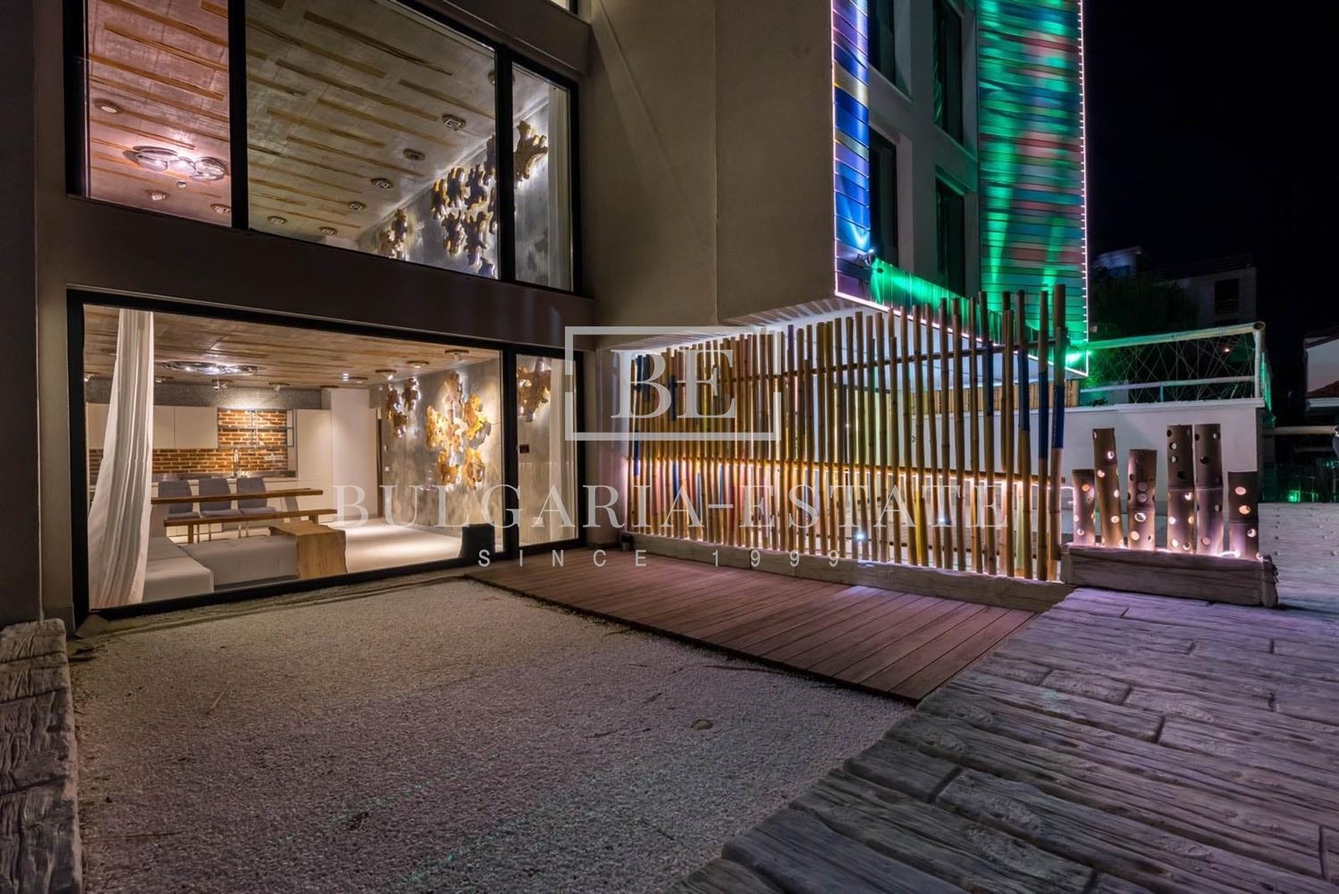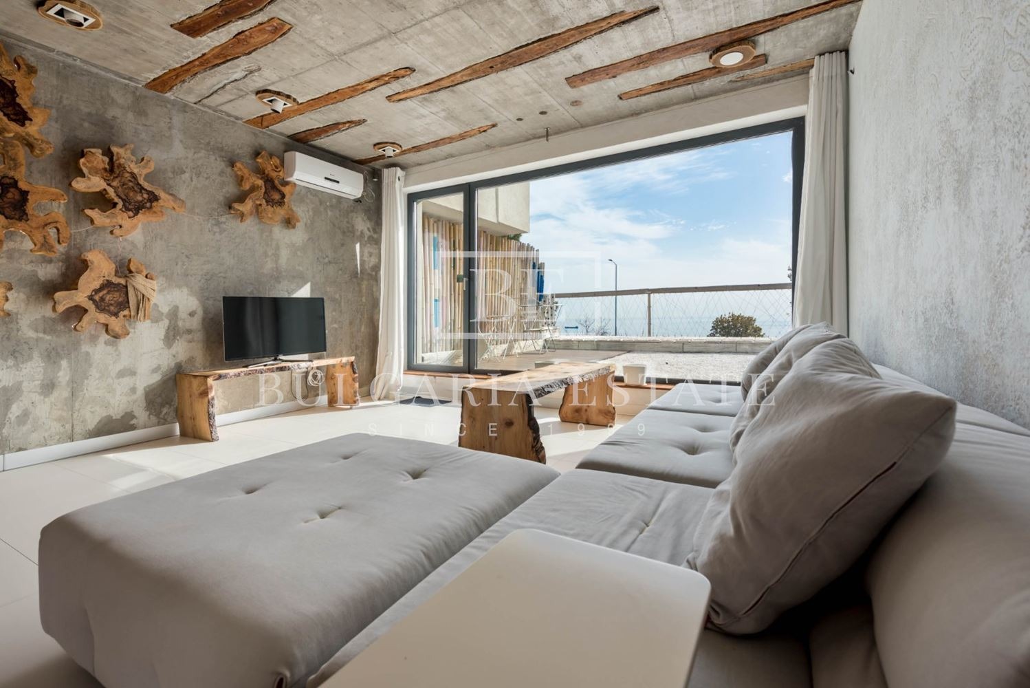 Оригиналният дизайнерски апартамент е разположен на първи етаж и притежава тераса с несравнима морска панорама. В обзавеждането са използвани материали и брандове от най-висок клас, но най-голямото предимство на жилището е, че апартаментът е чисто нов и не е обитаван до момента.