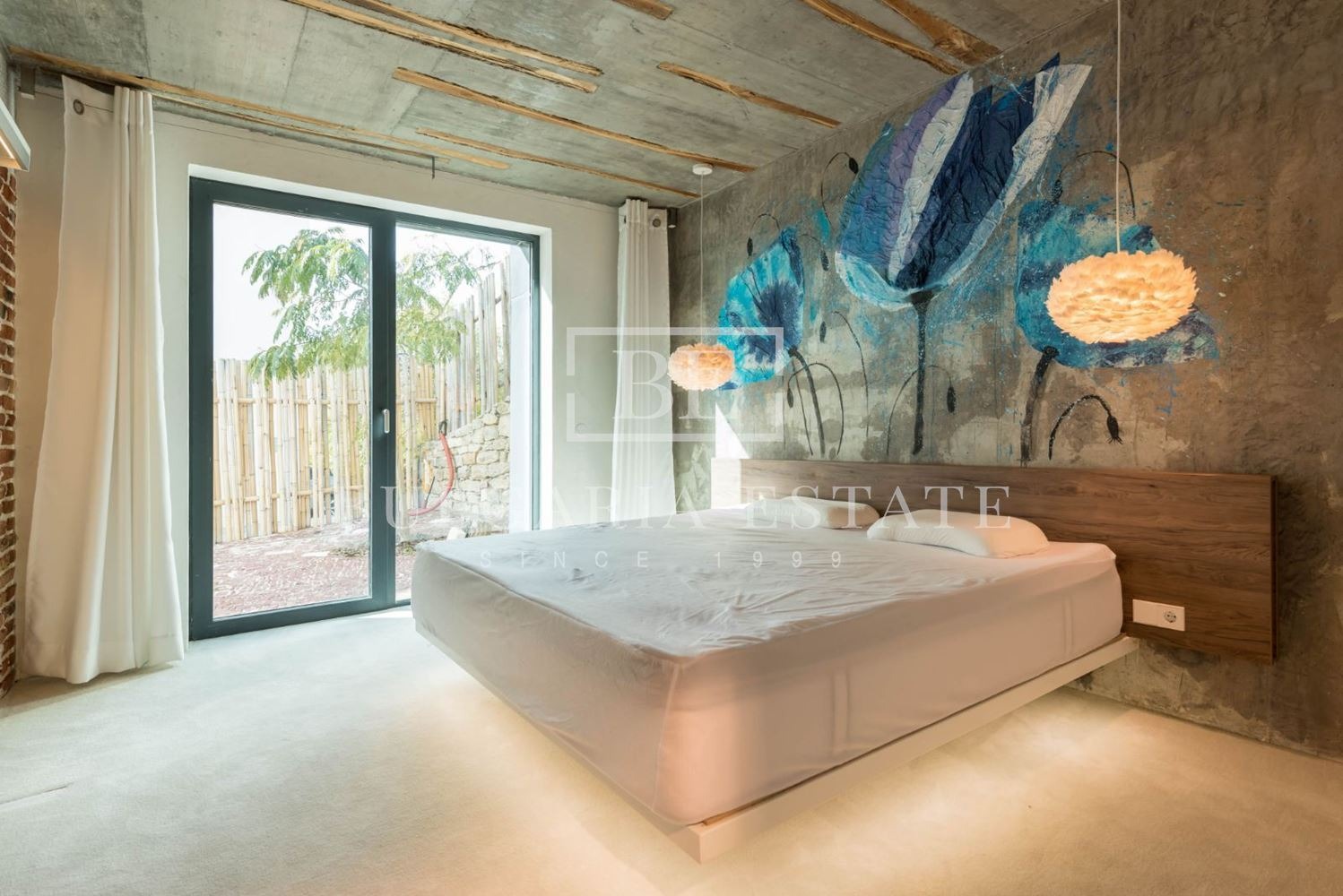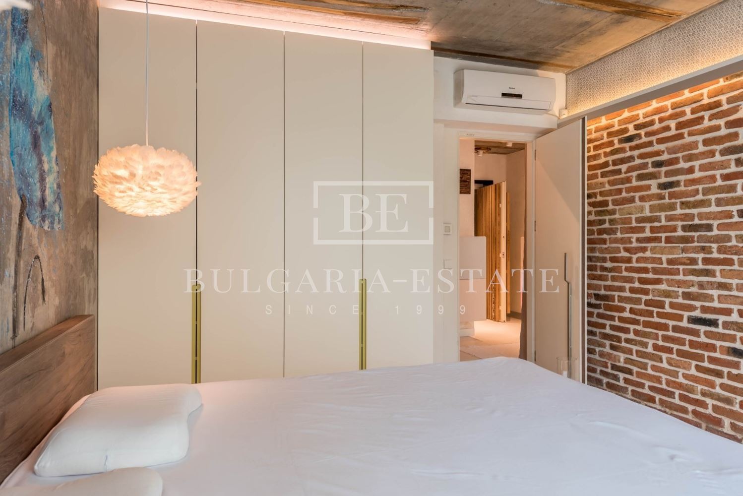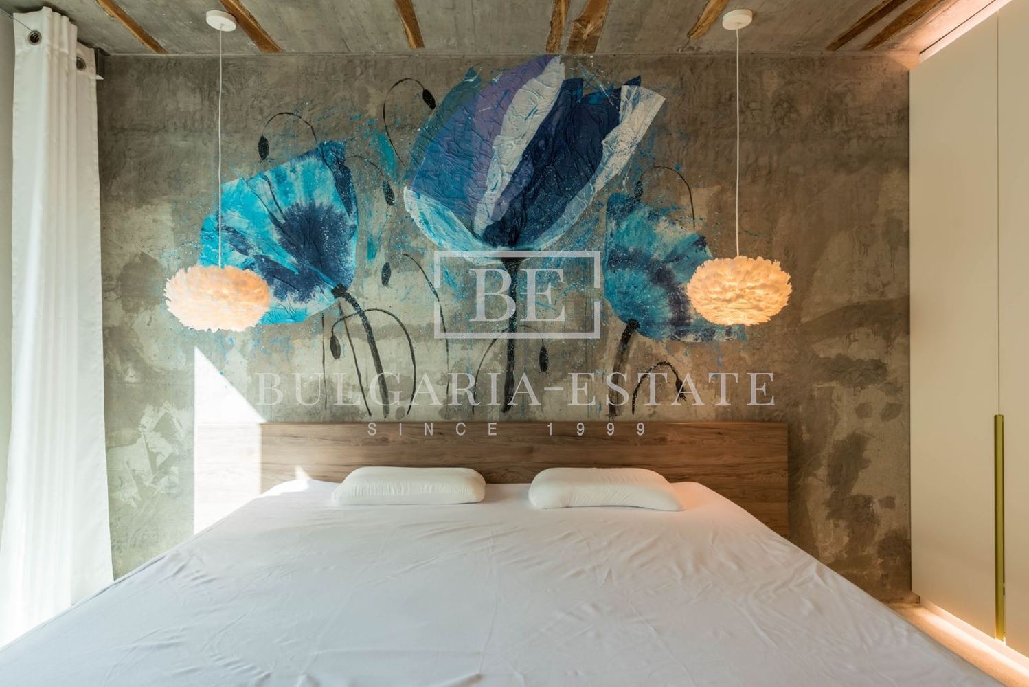Дизайнът е уникален - естествен и модерен, предизвикателен и светъл, носещ посланието на автономност, релакс и морската атмосфера. В бетоновите плочи по тавана на апартамента са вградени естествени дървени орнаменти от акация. Тухлените стени и бетонът са използвани за естествена декорация, като са допълнително обработени, импрегнирани и грундирани. Луксозно обзаведен, с мебели, кухня, матраци и дивани, атрактивни плочки, осветителни тела - всички са на известни италиански марки.