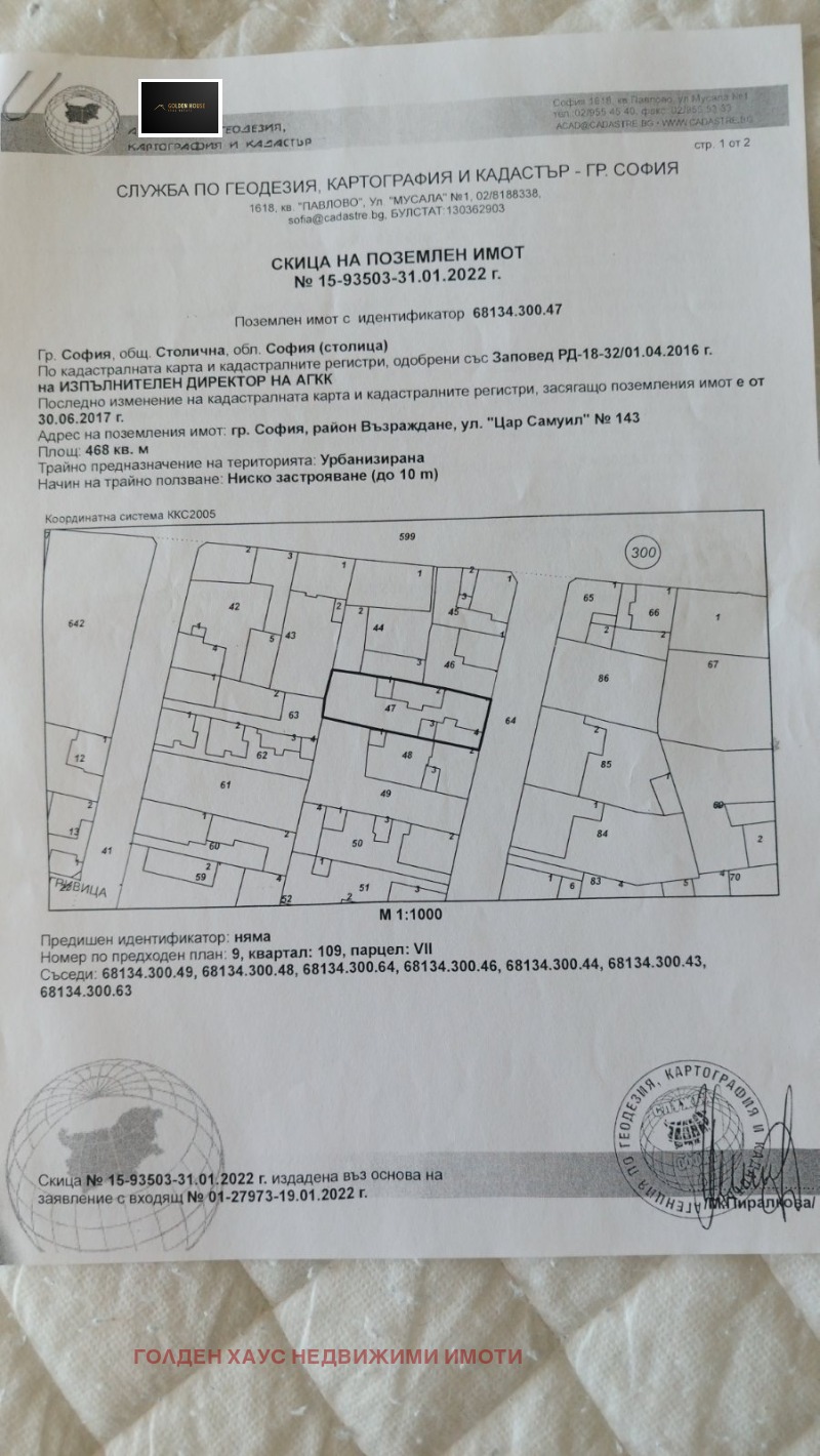 Агенция за недвижими имоти Golden House Real Estates Ви предлага за продажба парцел с площ от 468 кв.м, разположен на тихо и спокойно място с отлична локация.