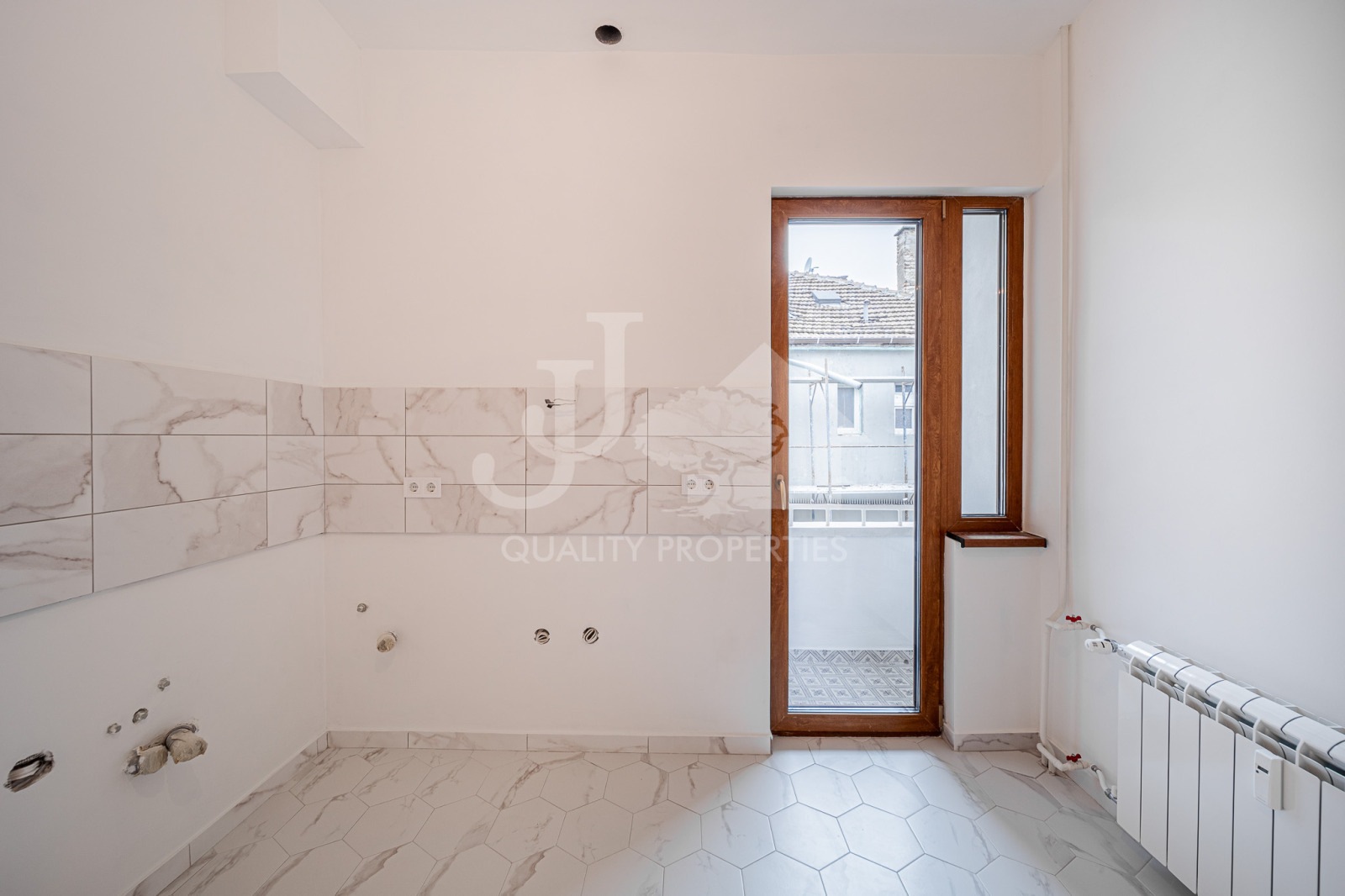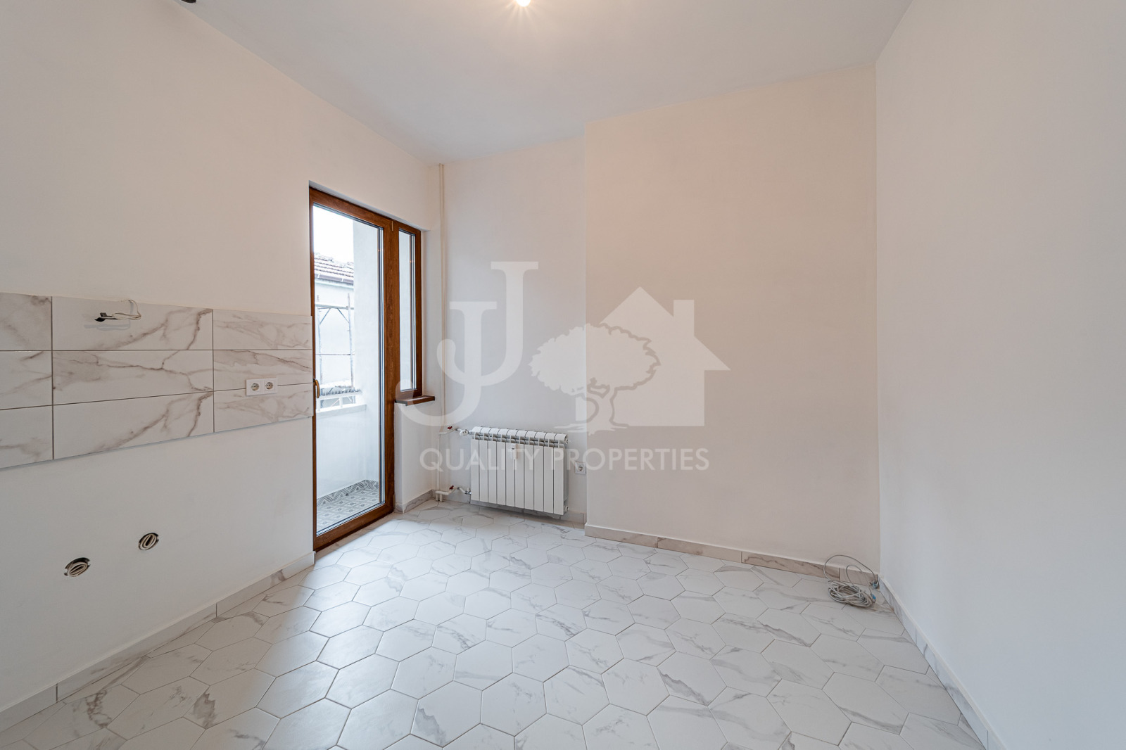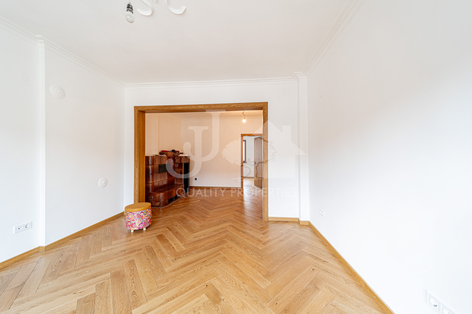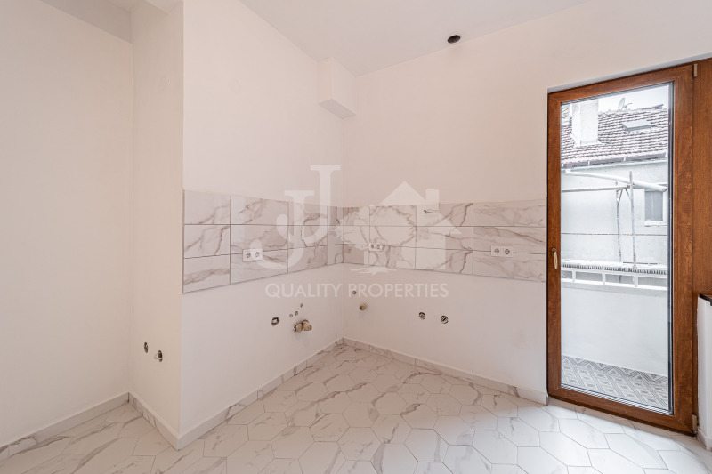 Имотът е изцяло реновиран с висок клас материали и внимание към всеки детайл. Поставена е немска PVC дограма Kömmerling с двоен стъклопакет 48 мм, 5-камерен профил и висок клас обков, осигуряващи отлична топло- и шумоизолация и панорамен ефект. Интериорните врати са поръчкови, изработени от Треска ООД, с MDF основа и естествен фурнир. Подовите настилки са изцяло обновени. Санитарните помещения са оборудвани с висок клас санитария Viega,