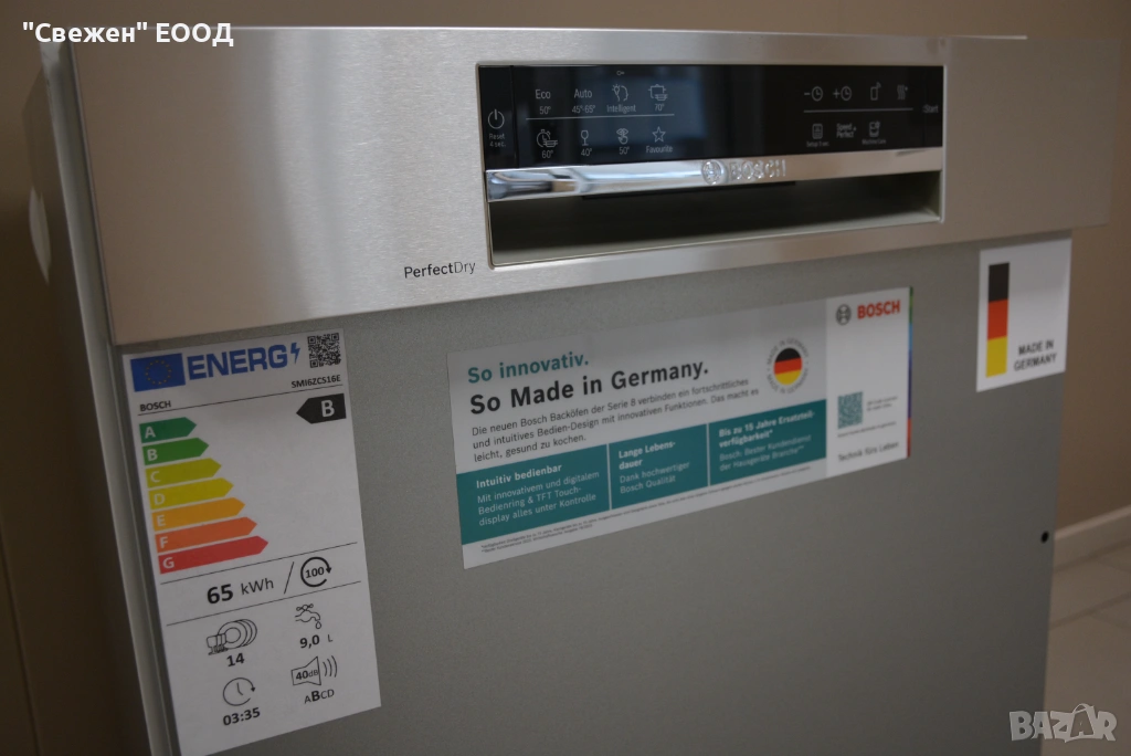 Home Connect (Wi-Fi) – интелигентно управление през телефон или таблет. Позволява дистанционно стартиране, мониторинг, известия и изтегляне на програми.