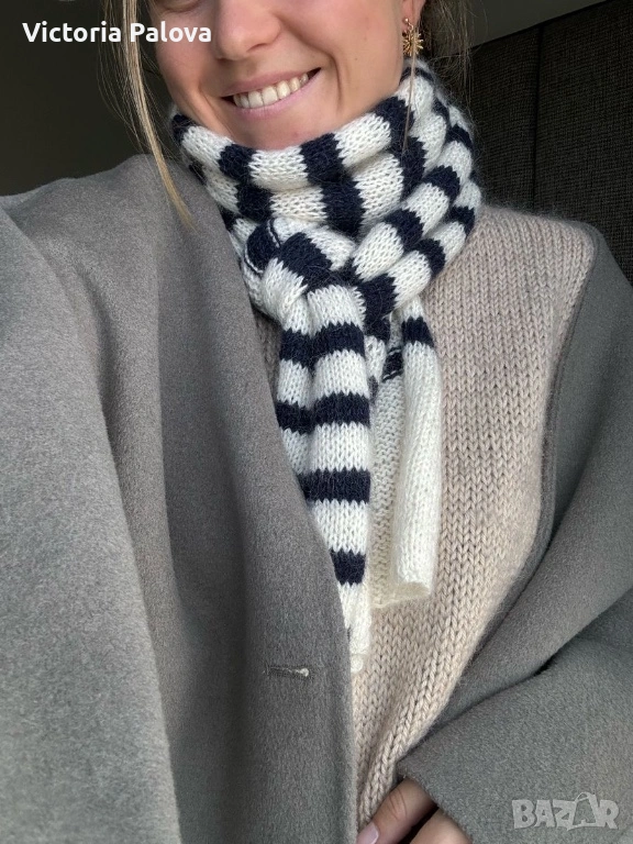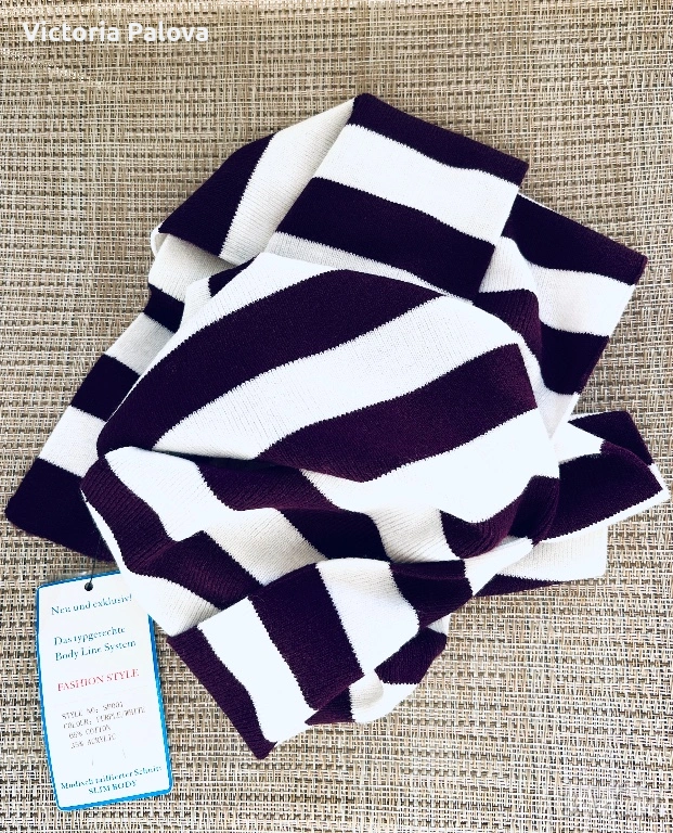 Моден аксесоар за стилен вид, шал от колекция BODY LINE SYSTEM FASHION STYLE . С модерен дизайн в ивици от наситено лилаво и чисто бяло, той добавя елегантност и свежест към всяко облекло. 65% памук и 35% акрил - мекота, комфорт и дълготрайност. Размери 180 см дължина и 20см ширина - идеален е за драпиране около врата, раменете или като акцент върху чанта.
