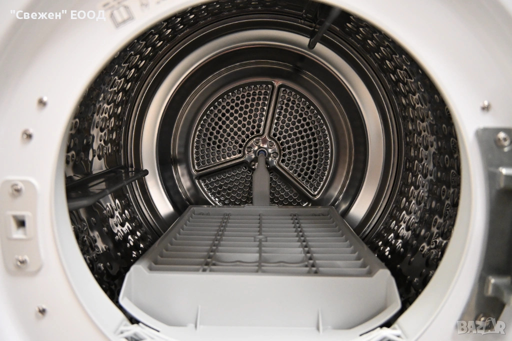 Auto Cleaning Condenser: Кондензаторът се почиства автоматично с мощни водни струи. Така сушилнята поддържа висока ефективност и почти не изисква поддръжка.