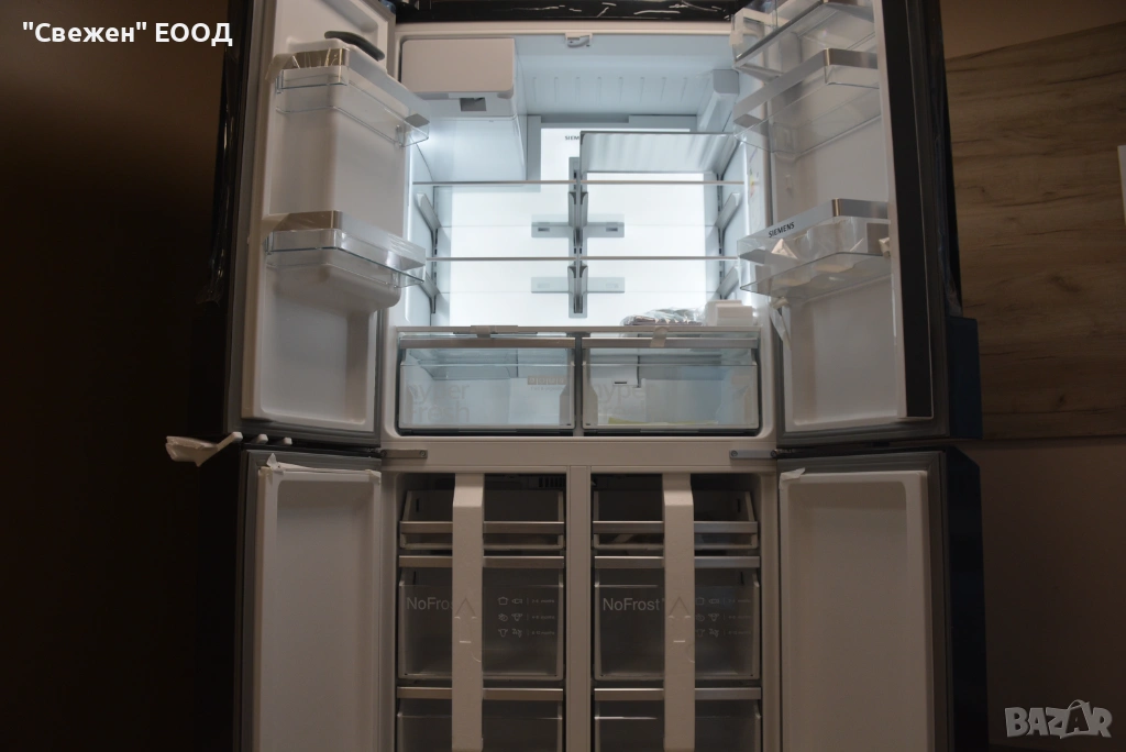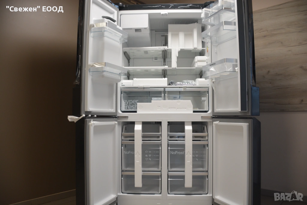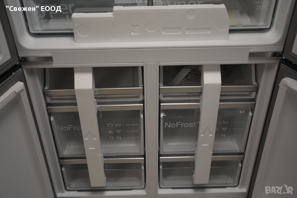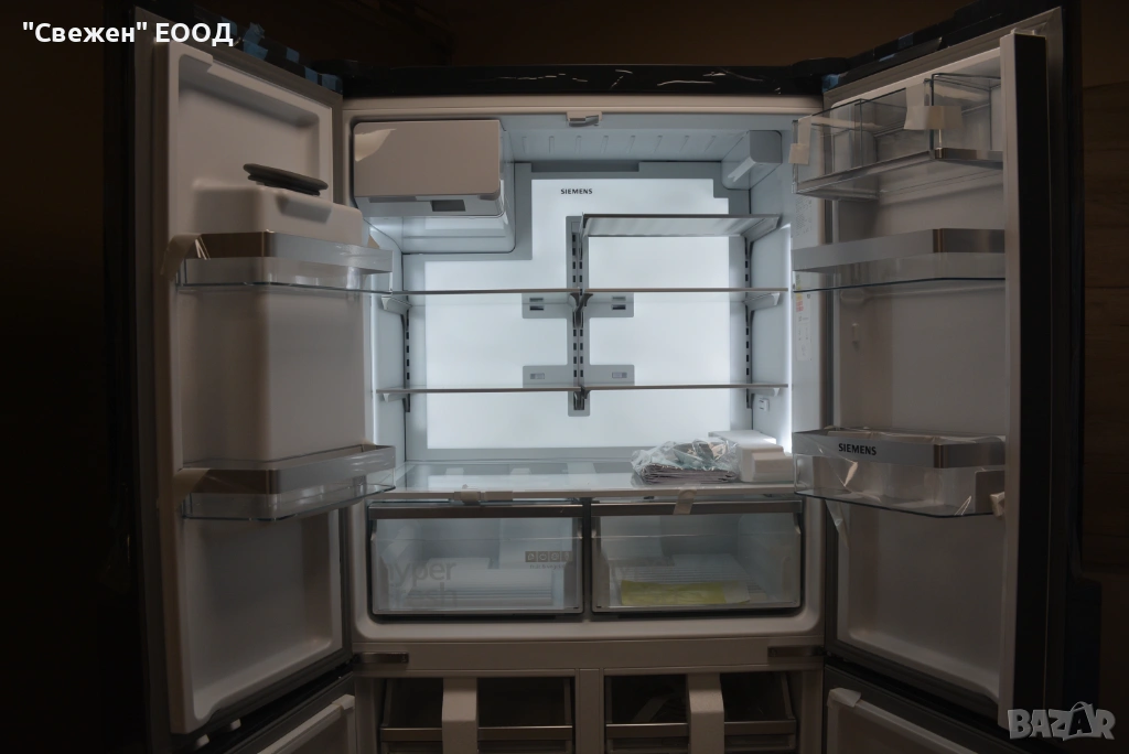 Отделението hyperFresh <0°C> е специална зона, създадена за по-дълго съхранение на месо и риба. При температура около 0 градуса продуктите остават свежи, сочни и с ненарушен вкус дни наред. Това е особено важно за хора, които обичат да готвят с качествени съставки и ценят вкуса на прясната храна. С по-ниската температура и оптимална влажност, хранителните качества се запазват максимално. Така всяко ястие започва с продукти, които изглеждат и миришат сякаш току-що са купени.