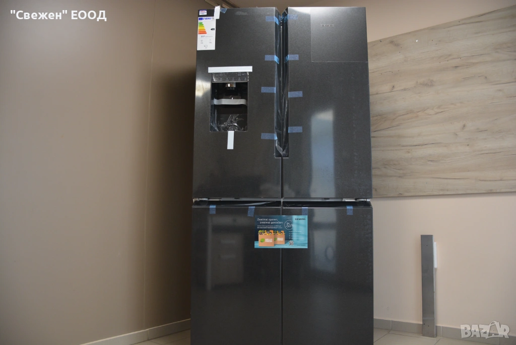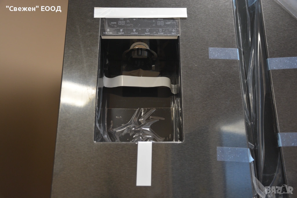 Диспенсер за лед, вода и натрошен лед с директно водоподаване: С едно движение получаваш студена вода, кубчета или натрошен лед – винаги на разположение. Идеалното удобство за лятото, партита или ежедневна хидратация.