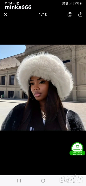Дамска шапка с естествен косъм в сив цвят. → Обява 53335294
