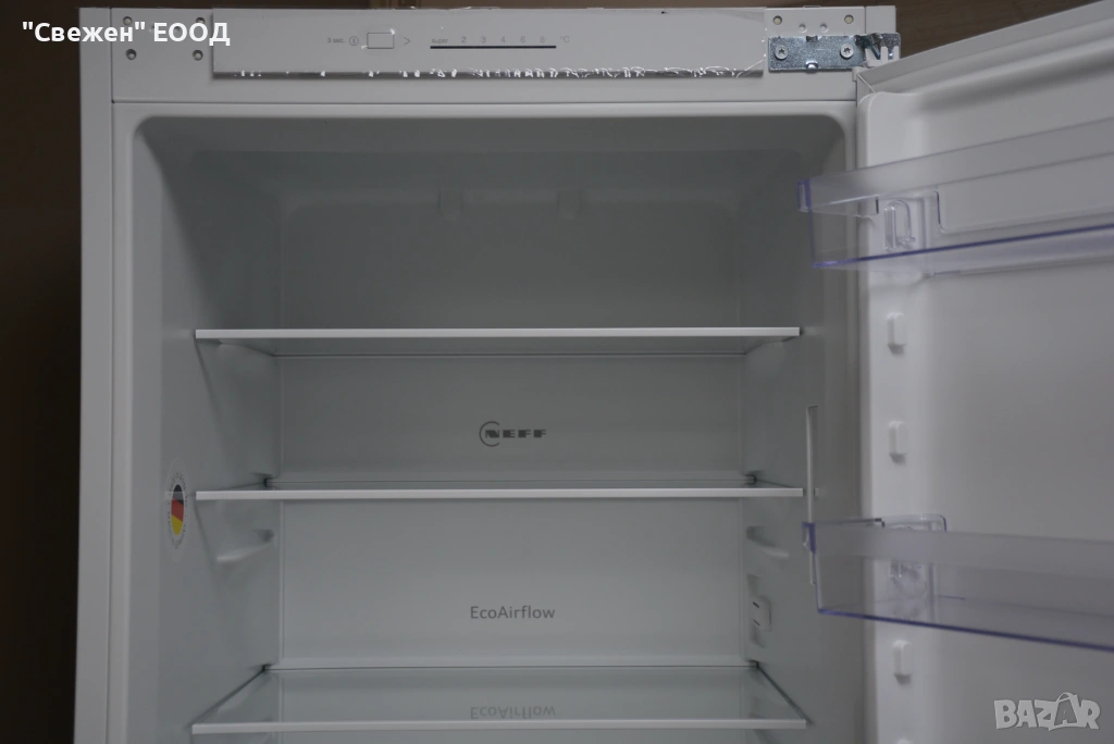 Eco Air Flow е система, която се грижи за равномерното охлаждане във всяка зона на хладилника. Благодарение на постоянната циркулация на въздуха, температурата и влажността са еднакви на всички нива – от най-горния рафт до чекмеджетата в долната част. Така няма „горещи“ или „прекалено студени“ точки, които да развалят храната. Всеки продукт – от млечни и месни до плодове и напитки – получава точно необходимите условия за максимална свежест и по-дълъг срок на съхранение.