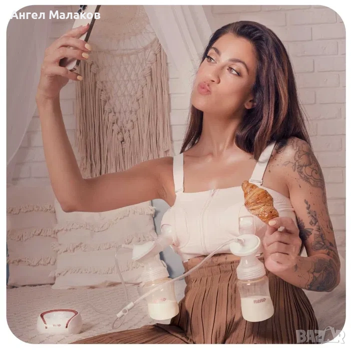 Помпата е много удобна за едновременно изцеждане и на двете гърди. Включения корсет улеснява много, тъй като ръцете остават свободни.