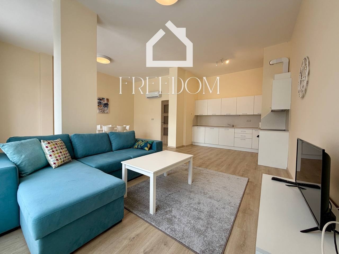 Имотът е с обща площ от 142 кв.м и чиста площ 128 кв.м, разположен на първи етаж (партер), над търговски обекти и подземен паркинг. Състои се от просторна дневна с кухненска част, две спални, два санитарни възела и тераса тип собствен двор с площ 32 кв.м и директен излаз към басейна. Височината на таваните е 3,20 м.
