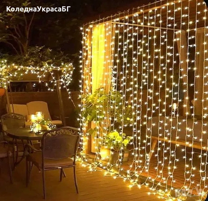 Постоянно светеща завеса 3 х 3 Бяла/топло бяла Завеса LED, снимка 1 - Лед осветление - 53335454 Постоянно светеща завеса 3 х 3 Бяла/топло бяла Завеса LED, снимка 2 - Лед осветление - 53335454 1/2
