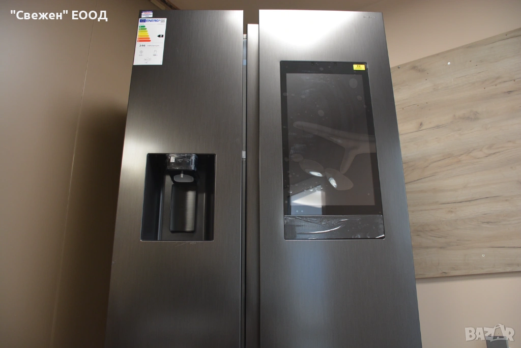 Вграден Ice & Water диспенсър с водопровод и Auto Indoor Ice Maker осигуряват постоянен достъп до студена вода и лед. Поддържа се воден филтър, като състоянието му се вижда на дисплея.