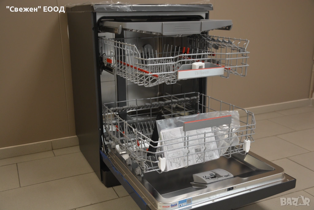 След края на измиването вратата се открехва автоматично, за да се освободи парата и да влезе свеж въздух. Това подобрява резултатите върху пластмасови кутии и чаши, намалява конденза по стените и съкращава времето за сушене – без да се налага да оставяте вратата на ръка. Работи напълно автоматично при съвместимите програми.